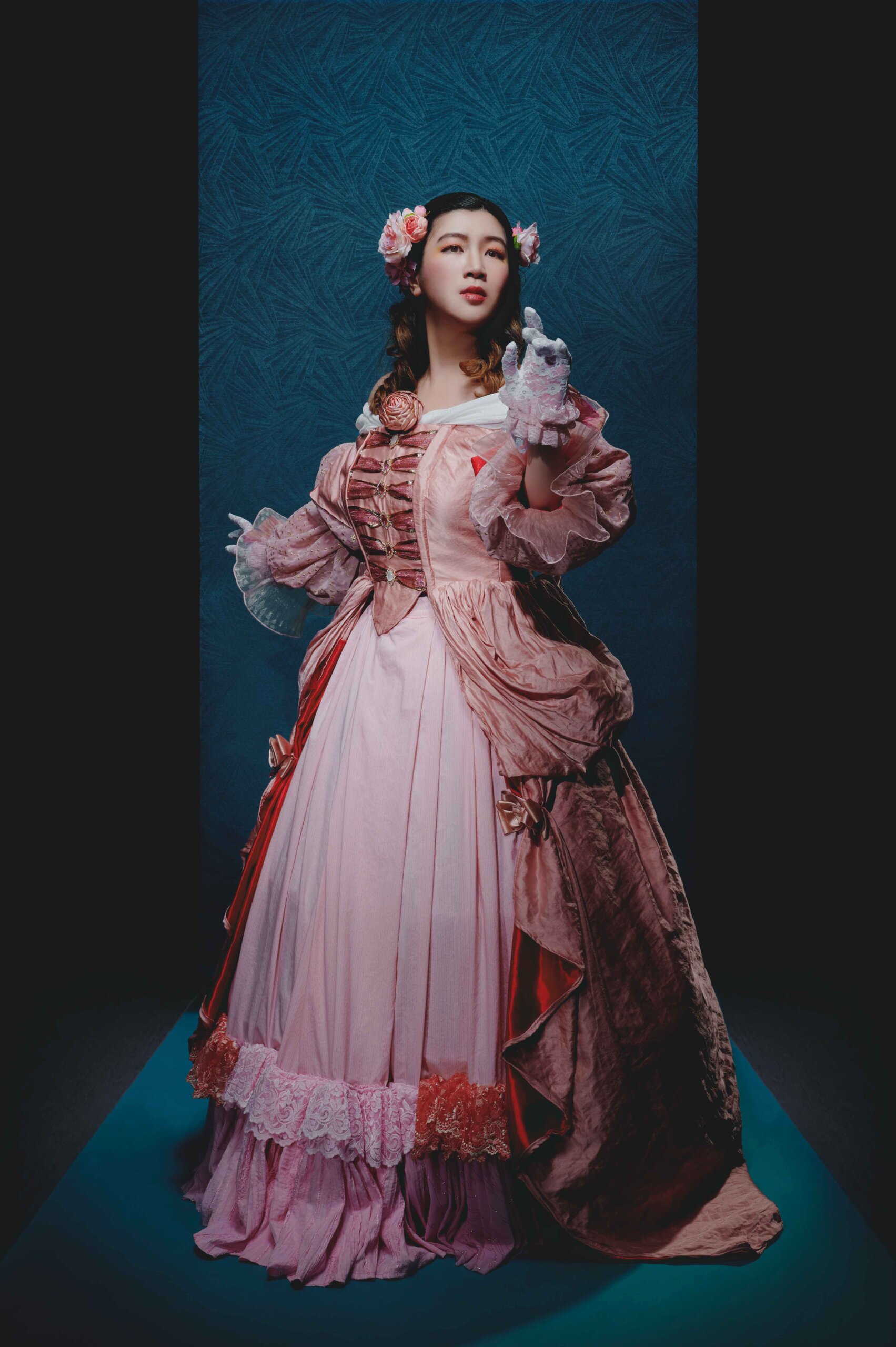 La Traviata tells the story of the tragic love between Violetta and Alfredo, a young boy who wanted to be in love with Violetta. When designing this costume, I concentrated on the design of the late 17th century and finally decided to use luxurious decoration and fabric.