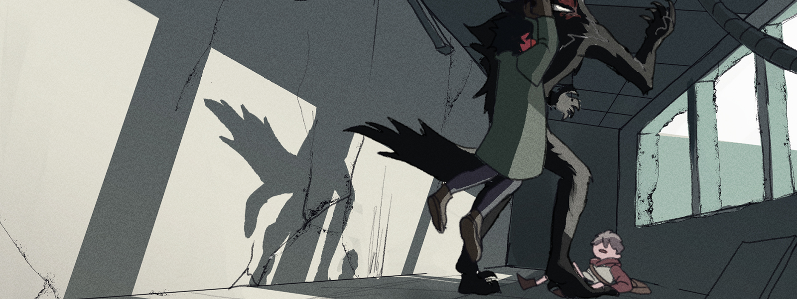 'Lupophobia is a story about fear, sacrifice, and hope. In the post-apocalyptic world, a virus has polluted the air. It turns people into man-killing monsters that look like wolves. Not long after the outbreak, the number of casualties climbed fast like a rocket. At first, world leaders tried to save humanity, but soon after that period, the whole world collapsed. The remaining survivors struggle every day, wearing gas masks to prevent infection, and always stay alert for the monsters. A loner and a lost child met in the abandoned city. Monsters were lurking in the shadows, and both of them were trying to survive. Thus, the story of a man, a child and the monsters has begun. '