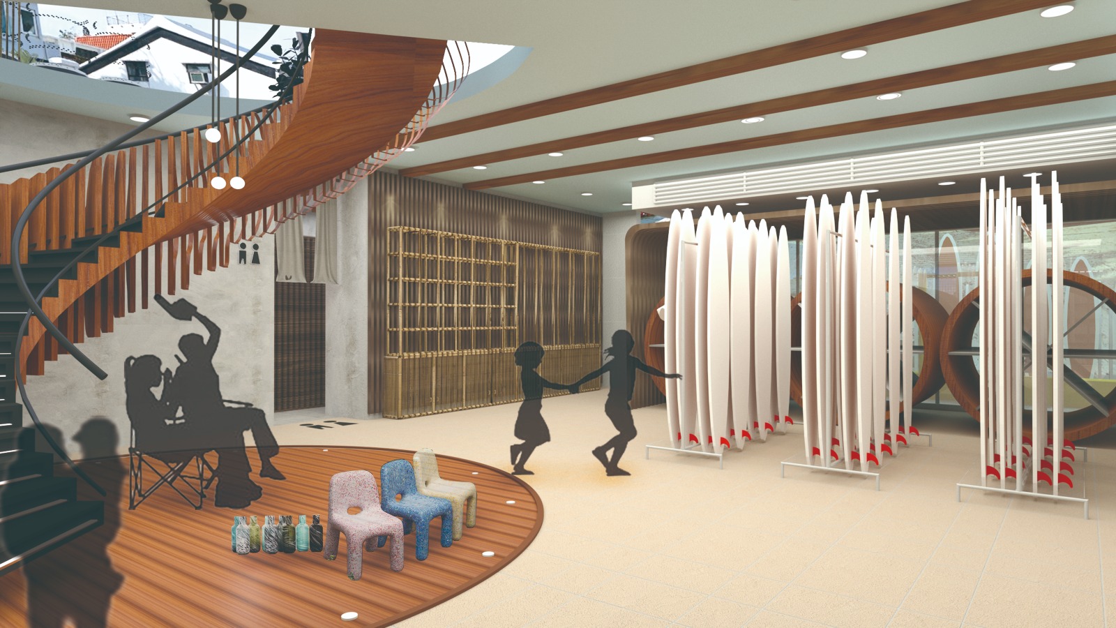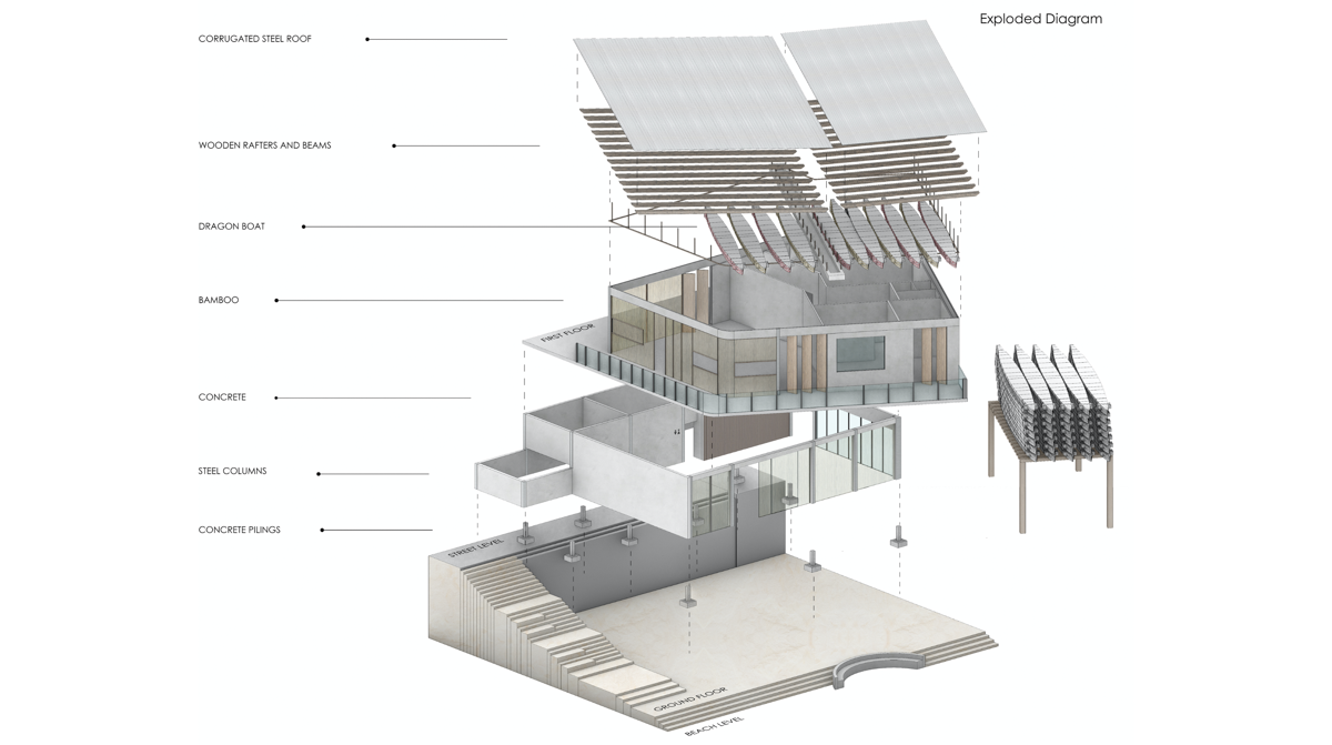 “Re . . .” was inspired from the experience of the designers during the site visits. It is well-known that plastic pollution is a global issue. Unfortunately, awareness is still a key challenge. I think we can tackle the problem through design. Following the keywords of reuse, renew, regenerate, and return, this project proposes that the Stanley Dragon Boat Association to work with a local NGO in creating a venue for raising sustainable awareness through community involvement. The main idea is that users would participate in the collection and repurposing process that generate pride amongst the people in being members of the sustainable community.
