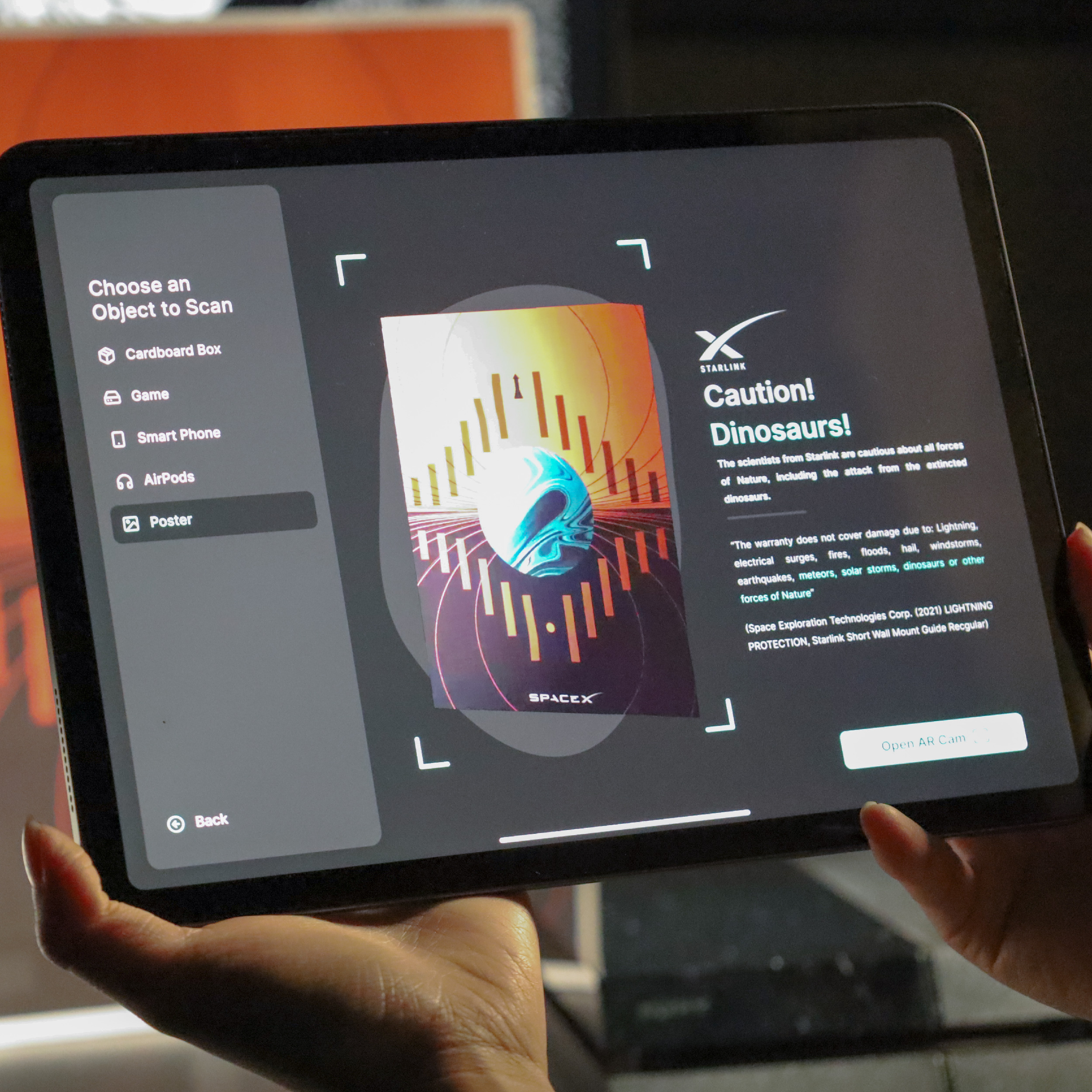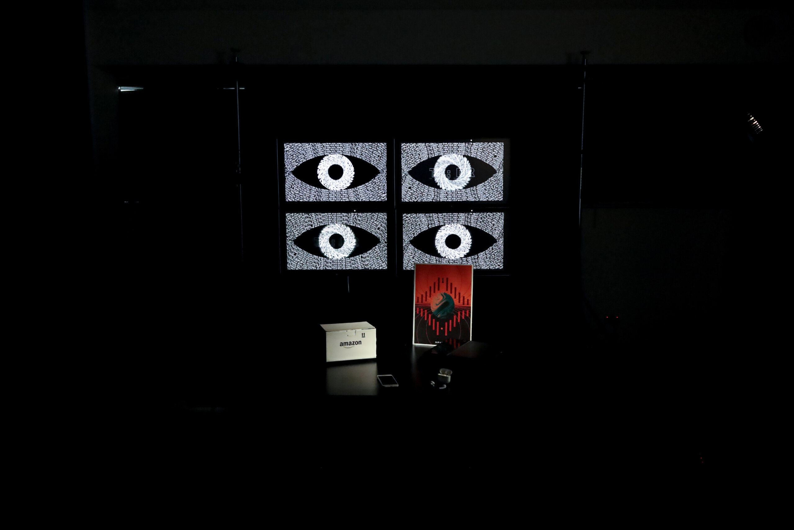 “Reading the Terms” is an interactive installation comprised of an app, triggerable AR objects, and four interactive motion graphics. Through the use of an app, the piece of work links the entire scene, which allows the audiences to read the instructions on the app carefully to explore and discover the contents of the installation. The app guides audiences to search for the AR objects and activates the related animation, which depicts the terms that audiences may have consented to. In the process. Audiences are encouraged to read through the text stated in the app. Some functions will be limited if audiences just blindly agree to the terms. This act aims to challenge the actual practice of agreeing to the terms and encourage the signees to think carefully.