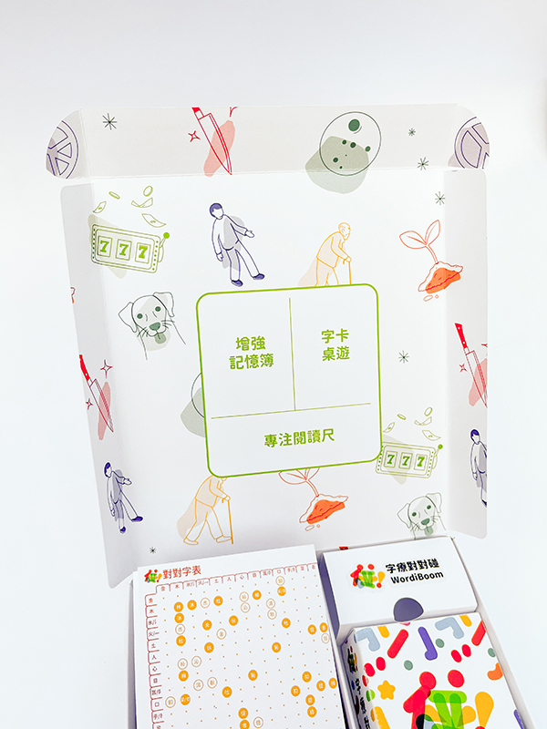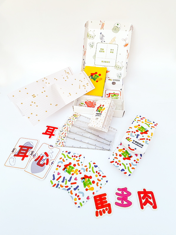 In recent years, research results have shown that the number of students assessed as having dyslexia has increased. Such students’ academic performances tend to be poor, and they often have diminishing learning motivation in the long run. This card game is designed to support students who dyslexia in learning the glyph structure of Chinese characters, such as similar and mirrored words. It can cultivate a positive mindset for students to get along with each other, improve their organisational skills, increase their motivation to learn, and boost their self-confidence.