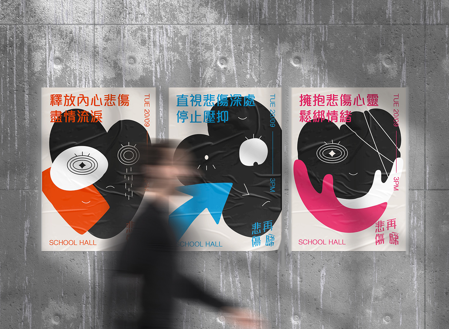 The project aimed to hold grief-healing mobile workshops at school to help teenagers go through the grievance process smoothly and recover as quickly as possible. The Black Heart in the main visual represents us, who feel sad, angry, and stressed whenever death event happens. After we have learned to embrace sadness, we can smile and pleasantly return to our normal life.