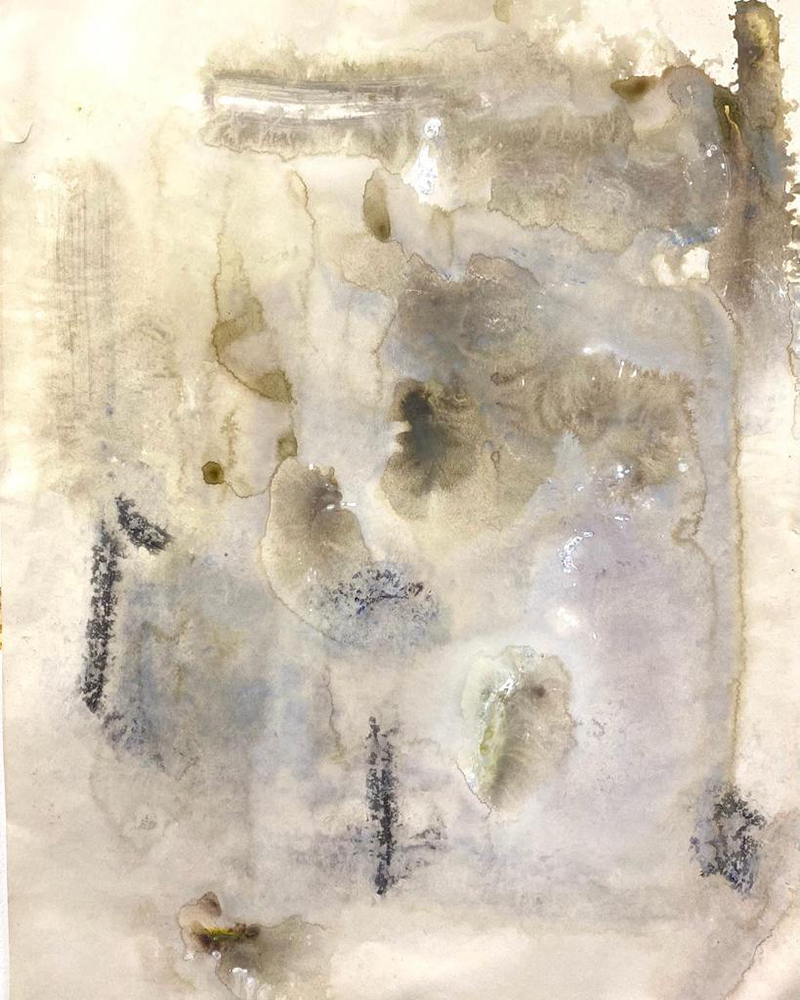 I see the painting process as a form of reflection of life experiences. I recollect my observations of the nature and the city, with fragmented pieces of movements, sound, and form. I observe how they are intertwined with personal and unconscious projection of oneself. I am fascinated by traces of beings and their relationship with one’s existence and actions. How one’s intuition reacts with their surroundings, and vice versa, how the external environments communicate with us. This process is an irresistable and constant interaction between the mind and the tangibles. The process of art making is a similar experience.