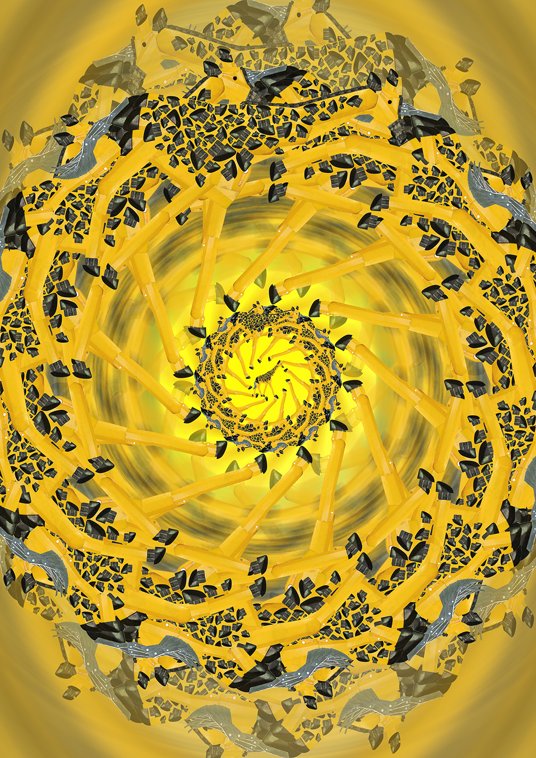 While applying Design Principles to arrange the graphic design in visual composition, students are required to design Symbolic objects based on Electronics, Motors, Animals, and Music.