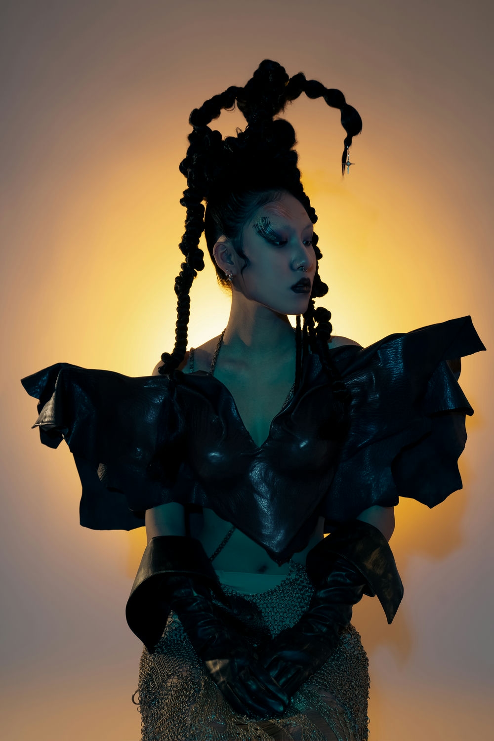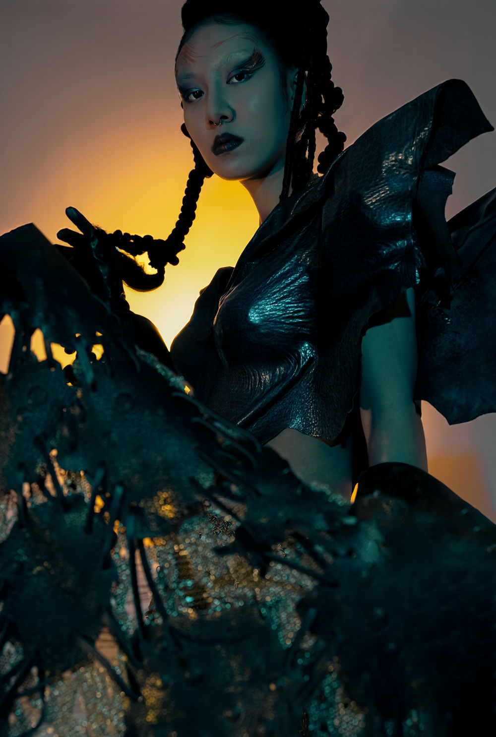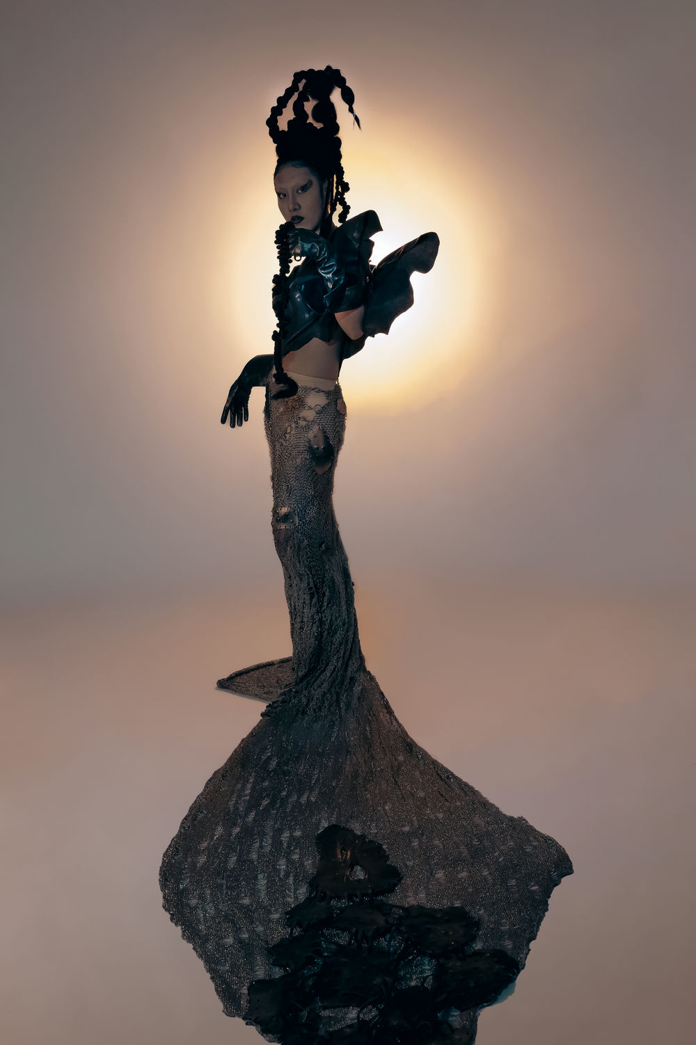 "I incorporated African tribal culture into my design to create a surrealistic aesthetic. I was inspired by the idea that, in some cultures, scars on the body are considered beautiful, whereas in others, flawless skin is the ideal. The finished product is a full outfit made from leather and chains."