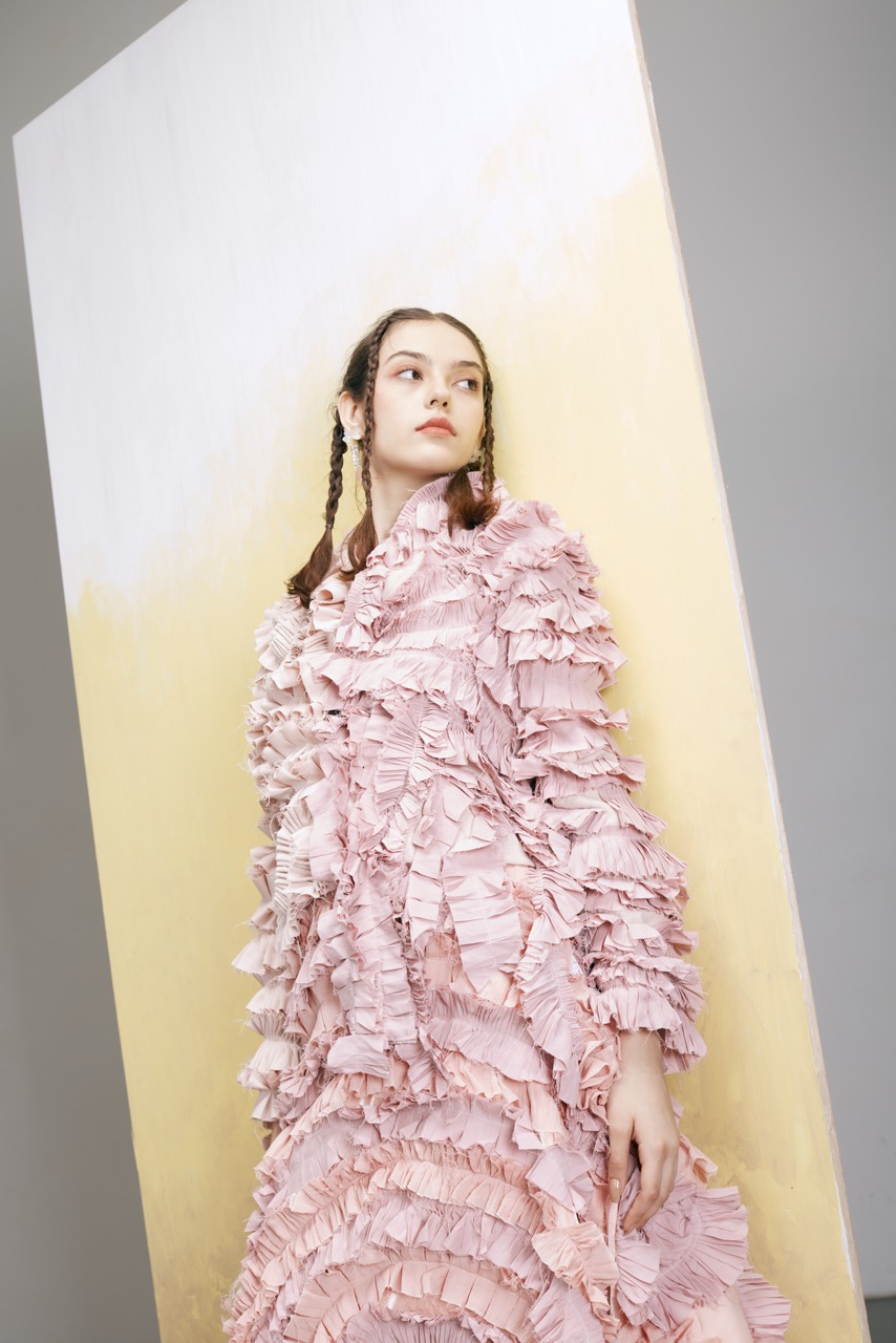 My inspiration is cake, sweetness and healing. Through my design, I hope people can feel dreamy and romantic, by using different materials and different types of lotus leaves to embody two sets of clothes.