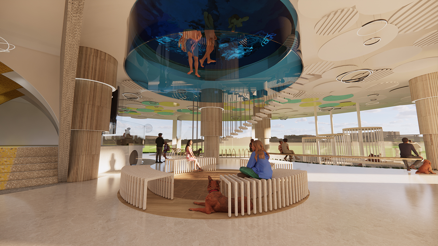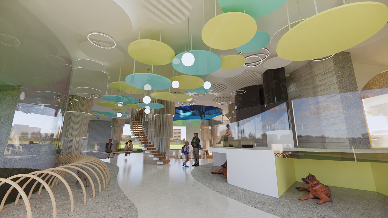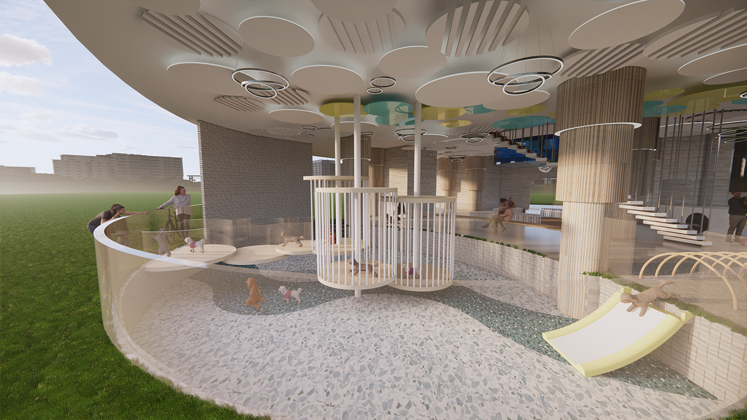With the current social trend of singlehood and aging population , many people prefer not to marry and have children. Some are replacing the traditional desire for marriage and children with pets. Moreover, “adoption instead of purchase” has become a social topic of concern. Therefore, I hope to create a leisurely and interactive space for dogs and their owners, to foster a unique and special experience.