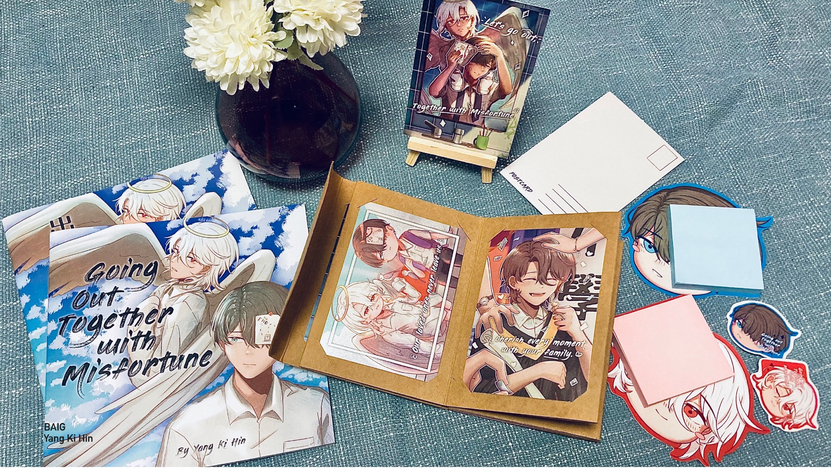 The main project in the project is to design a picture book for young people, use using "survivors of attempted suicide" and "misfortune" as themes, and create a series of side products. This story is about a very "normal" boy's boy on his way to school one day. A There is a sheet of paper on the boy's head and it is like a prophecy, showing the events that he will meet experience that day. On the way to school todayone day, he encountered encounters various incidents that alluded to his experience. These various memories lead the boy to a dead end step by step, but the angel “Misfortune” that he had has been ignoring saved saves him at a critical moment. This story was created to raise awareness among teens about social issues such as teenage suicide and the emotions of relatives and fr