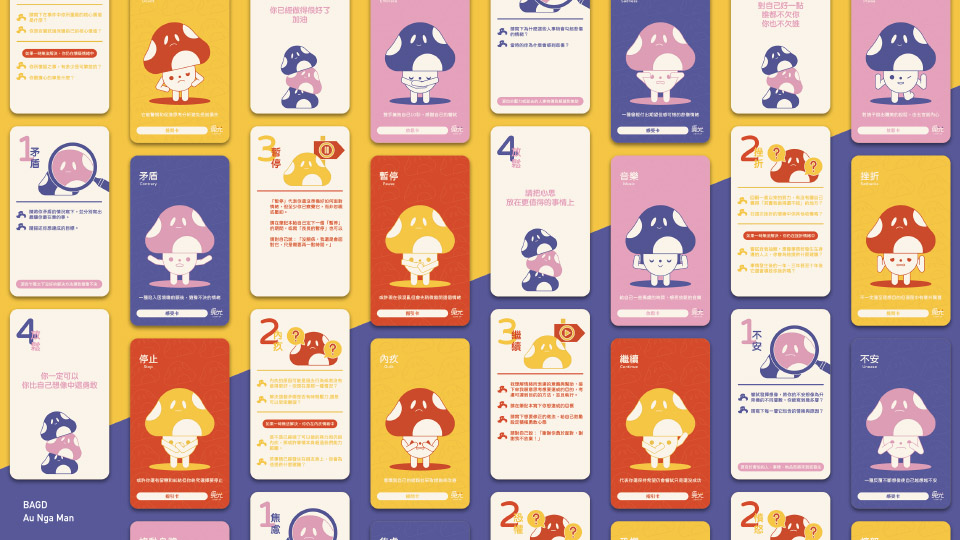 I designed self-talk cards for young adults aged between 20-30 who face new challenges and pressure in life. The cards utilize 18 common negative emotions with emotional reflection, self-growth, self-care, and action therapy to improve self-identity and self-awareness. Users can transform overthinking into a beneficial asset by exploring the sources and meanings of their negative emotions.