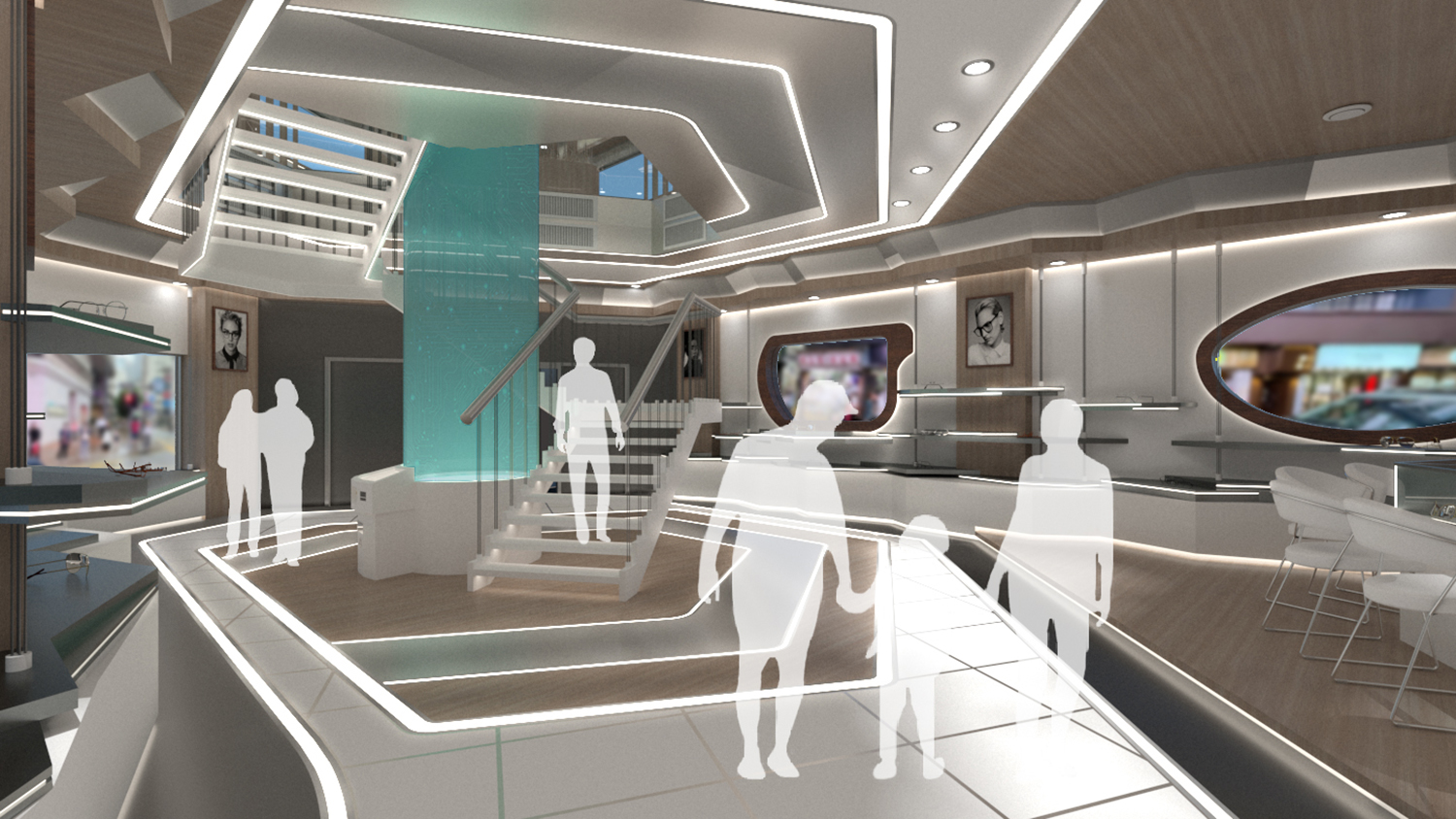 Bring out a soft feeling through the sense of science and technology and wooden elements, . it can accommodate customers of different ages and create different feelings through the proportion of the two elements on different floors.