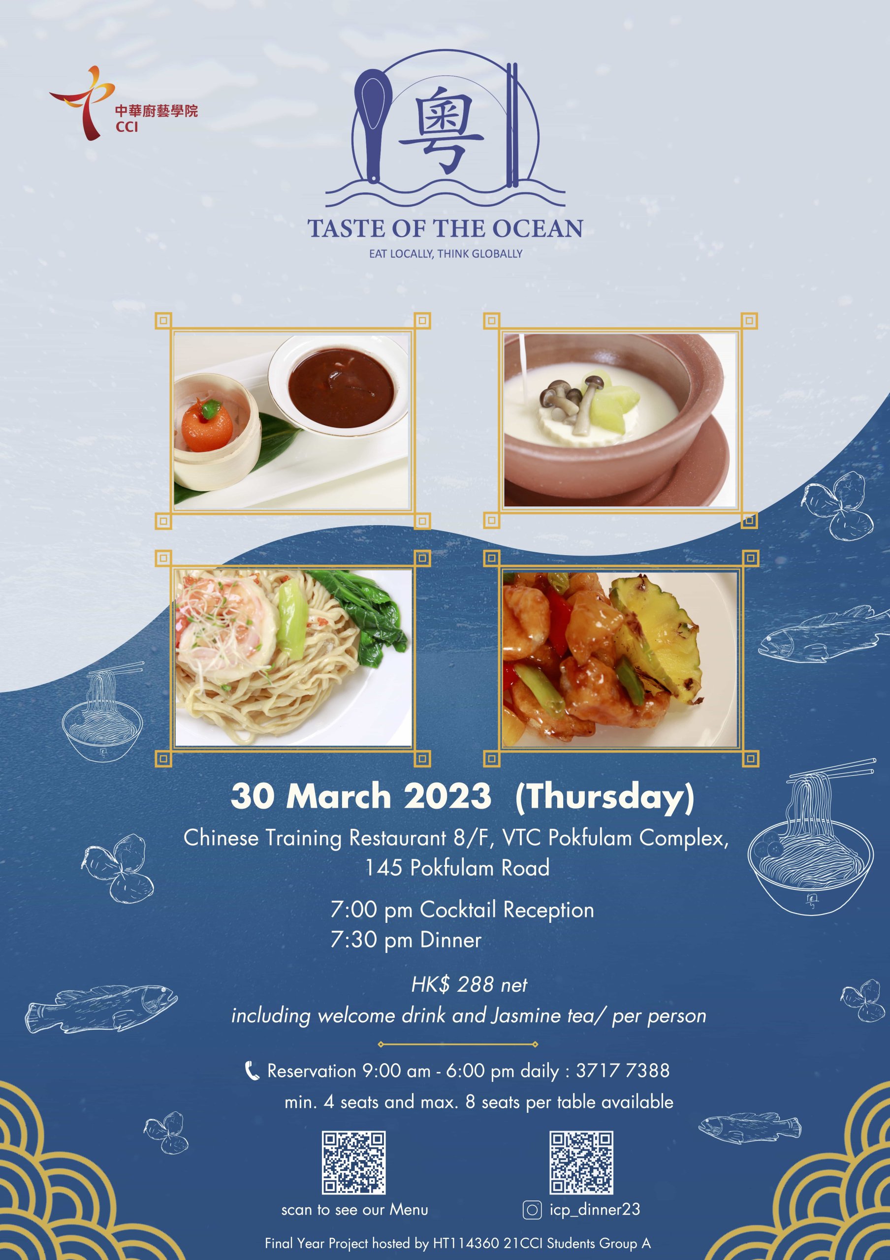 We are honored to be in charge of the designs for the Chinese Culinary Institute (CCI)'s banquet, "Taste of the Ocean," including posters, menu, and dining accessories to promote "Eat Locally, Think Globally."