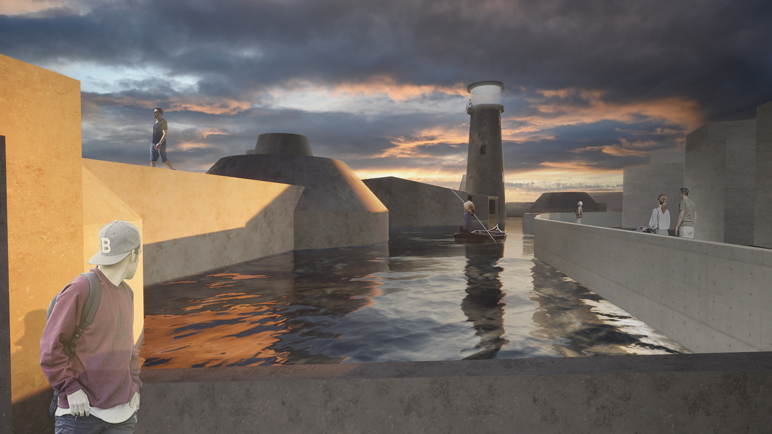 The concept of the project is the building being a part of the breakwater to protect the village and interpret an ongoing story to the users. Three programs were defined as a local history museum, community centre, and township office responding to the past, present, and future. Both programs describe and record different times and spaces in Lei Yue Mun Village.