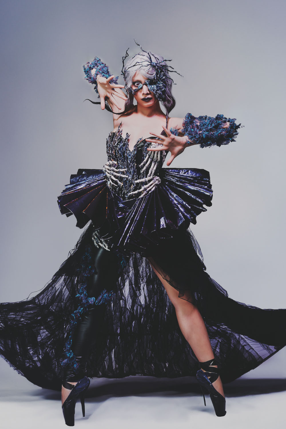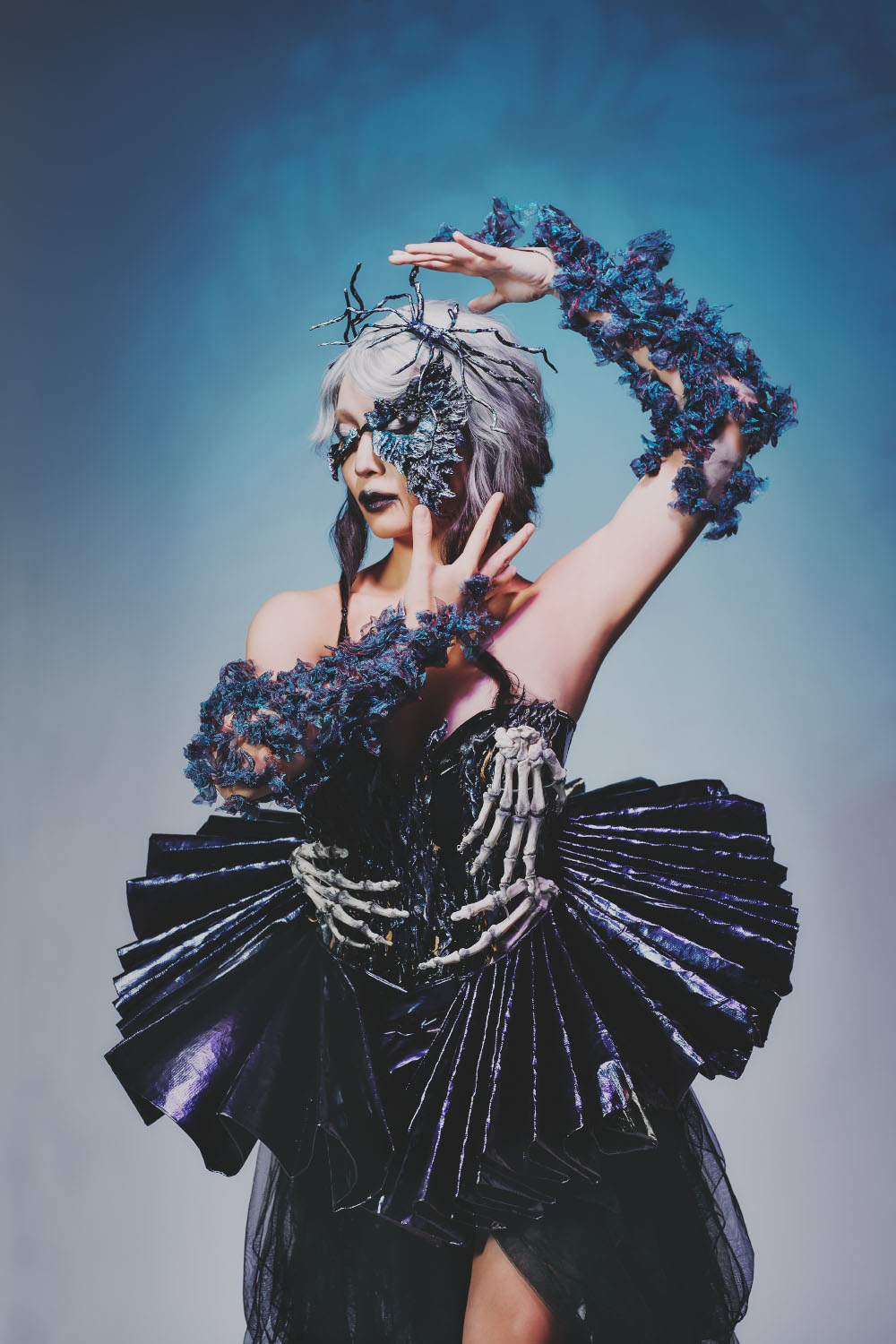 海拉服装设计独特,融合了北欧传统和神秘元素。它们以黑色、紫色和冰蓝色为主,并饰有蕾丝、皮革和宝石。放在一起,展现出海拉女神的优雅与神秘