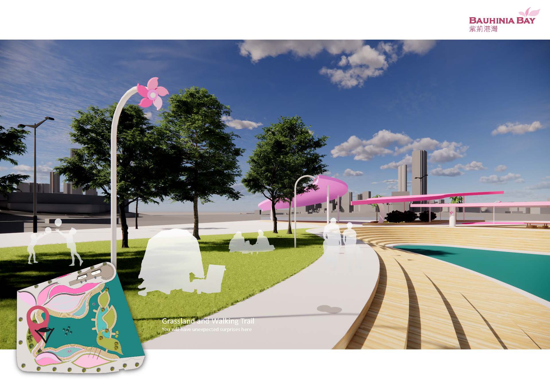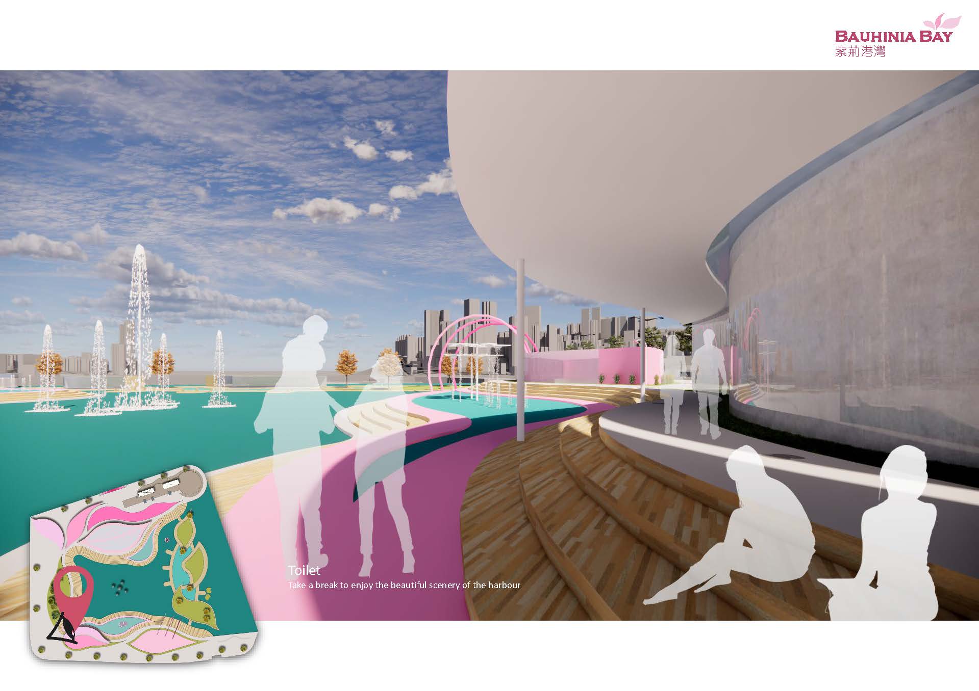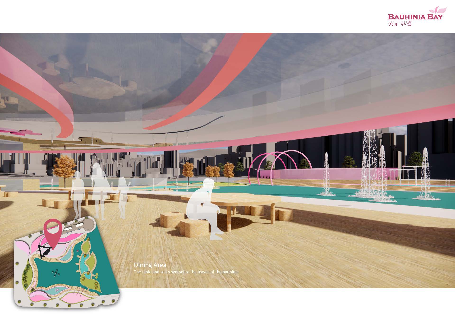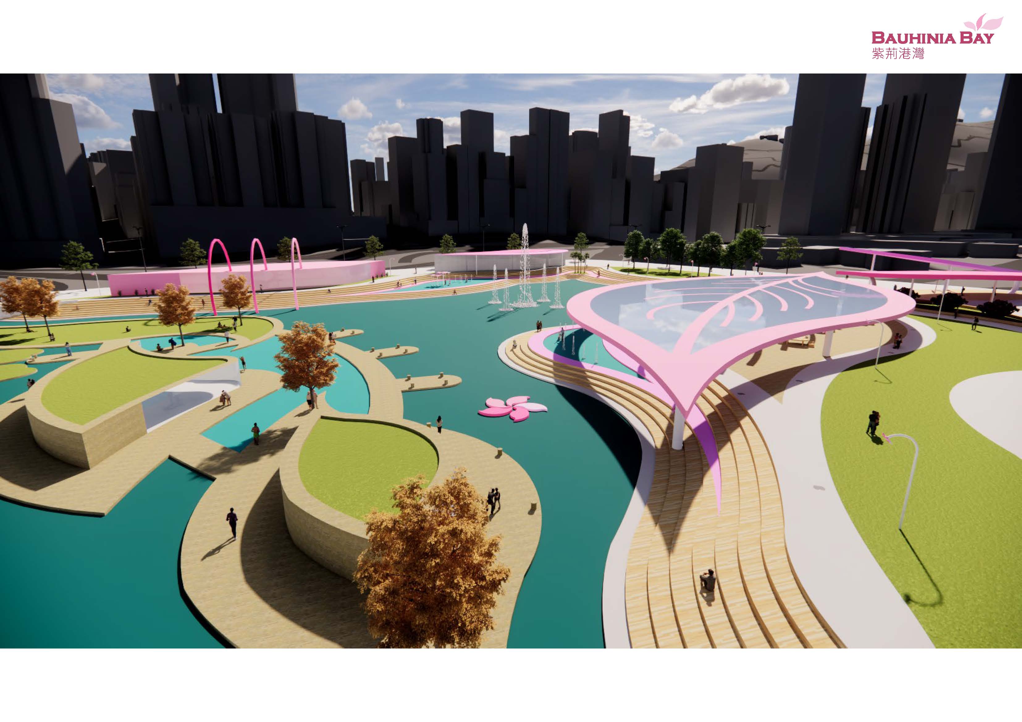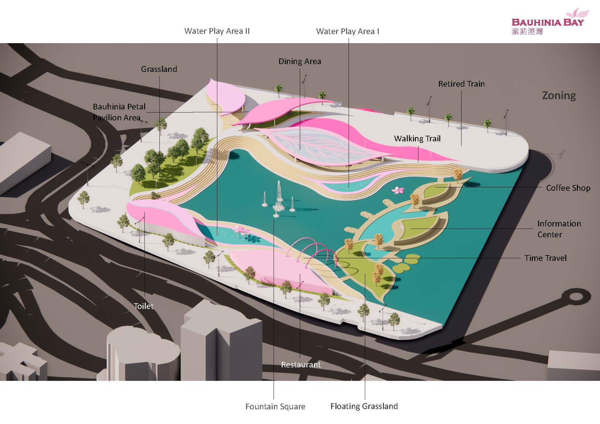 紫荆花是香港的市花,而紫荆湾也靠近位于湾仔海滨的金紫荆广场。因此,海滨利用紫荆花的花瓣作为分隔功能和设计元素。