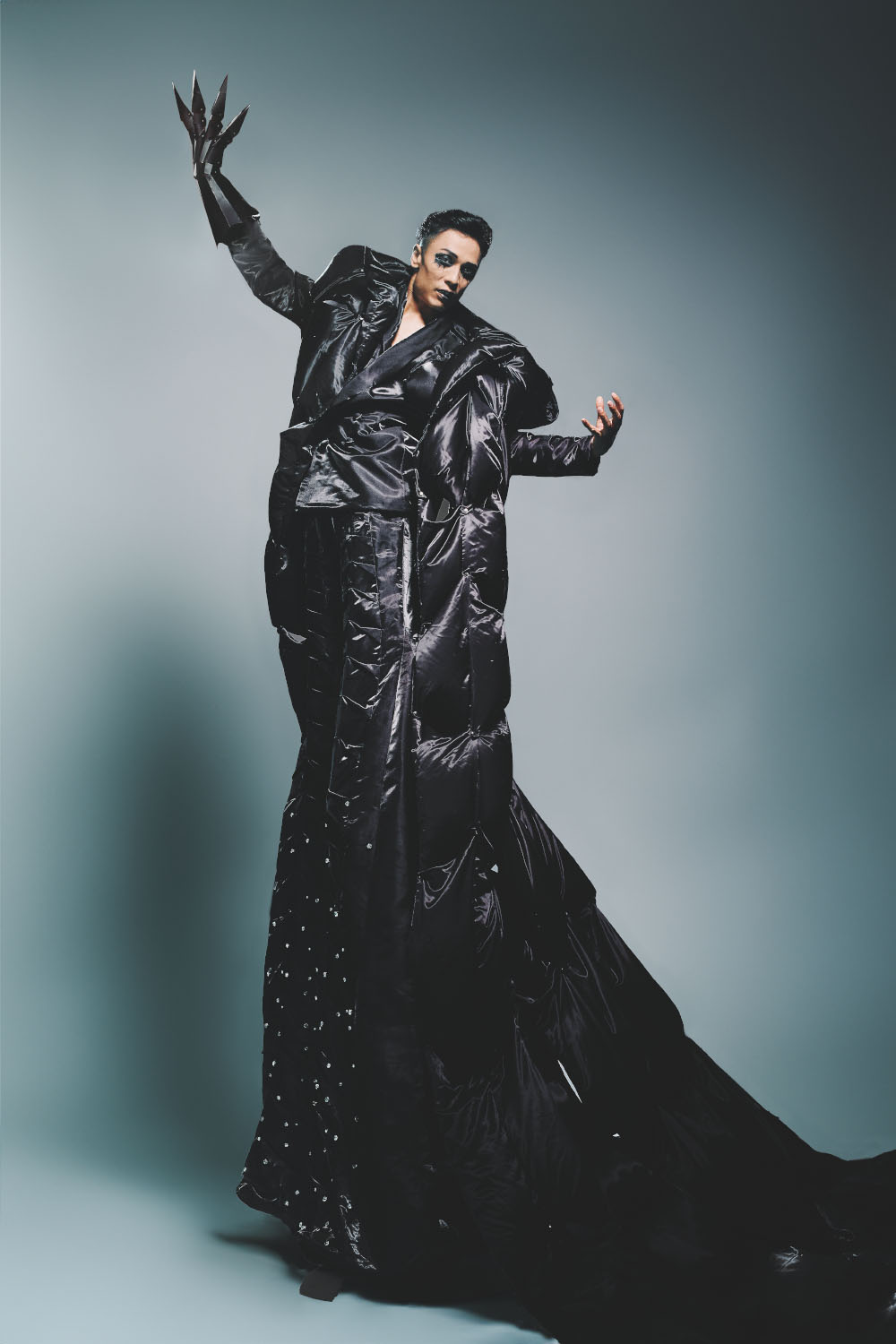 我的設計主要是根據霍德爾的性格特徵,以時尚的形式來呈現。我用高蹺來展示我的作品。迎合了我角色的性格特點,也能呈現出時尚、特殊的舞台效果,讓大家感受到時尚、服裝、融合。
