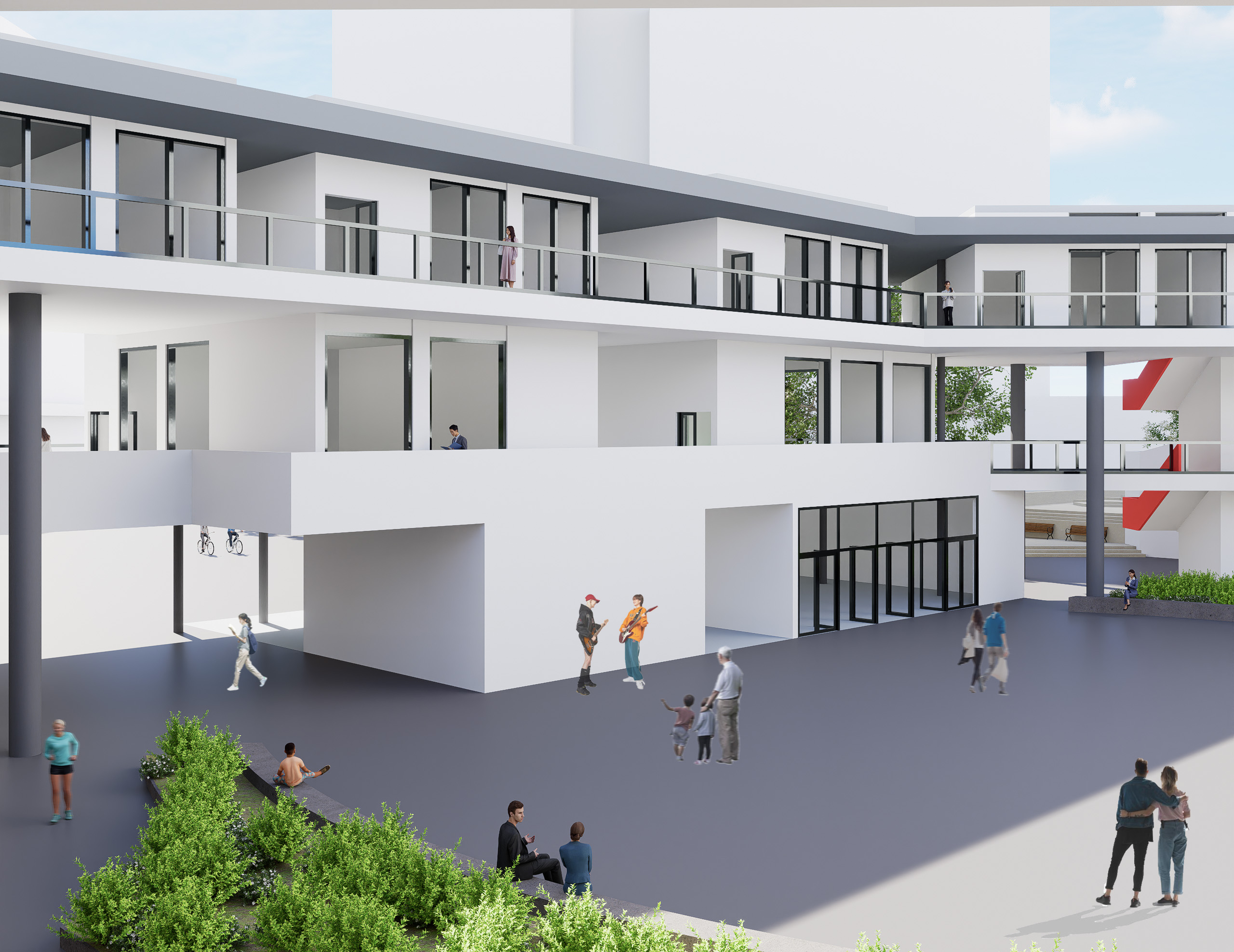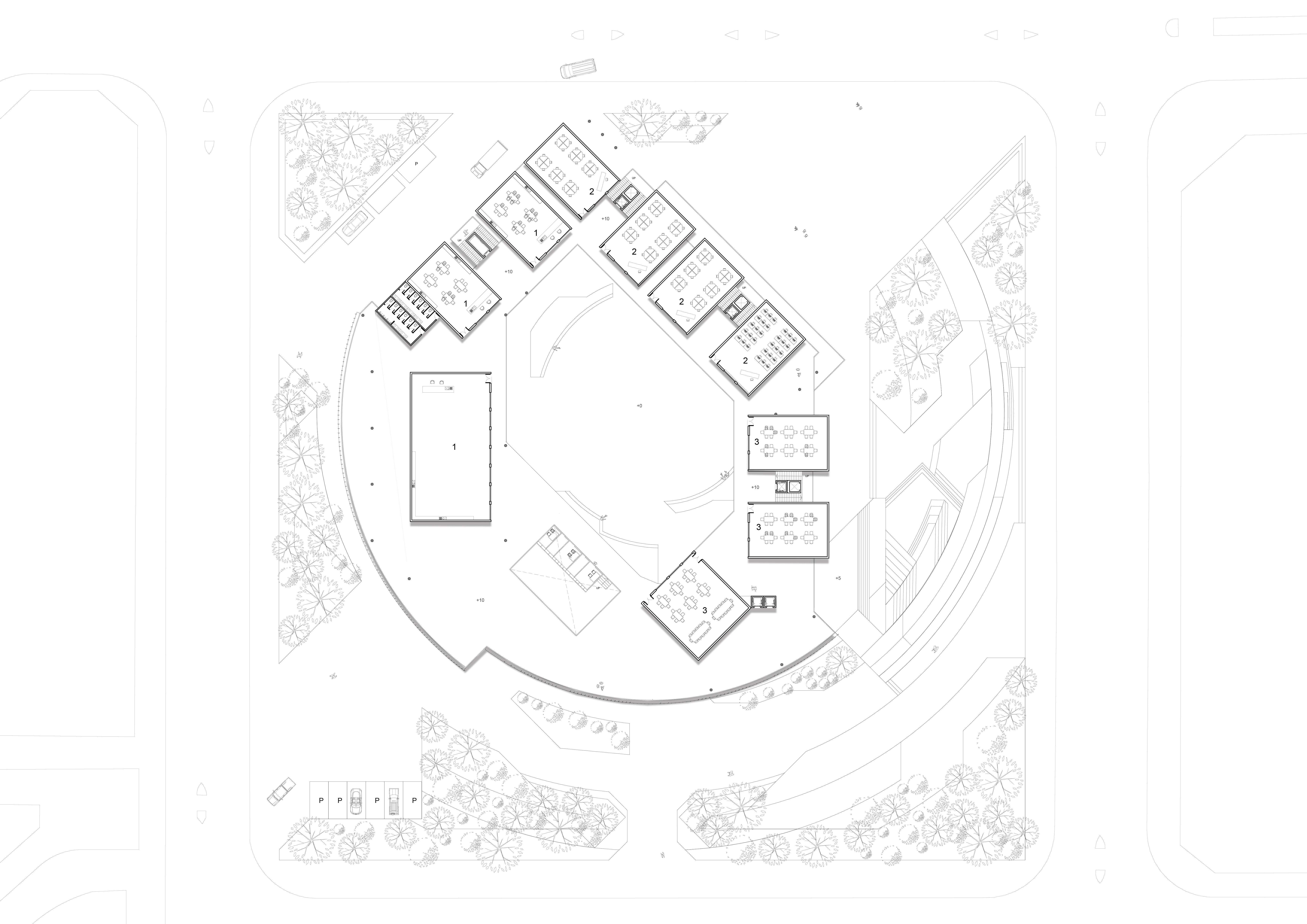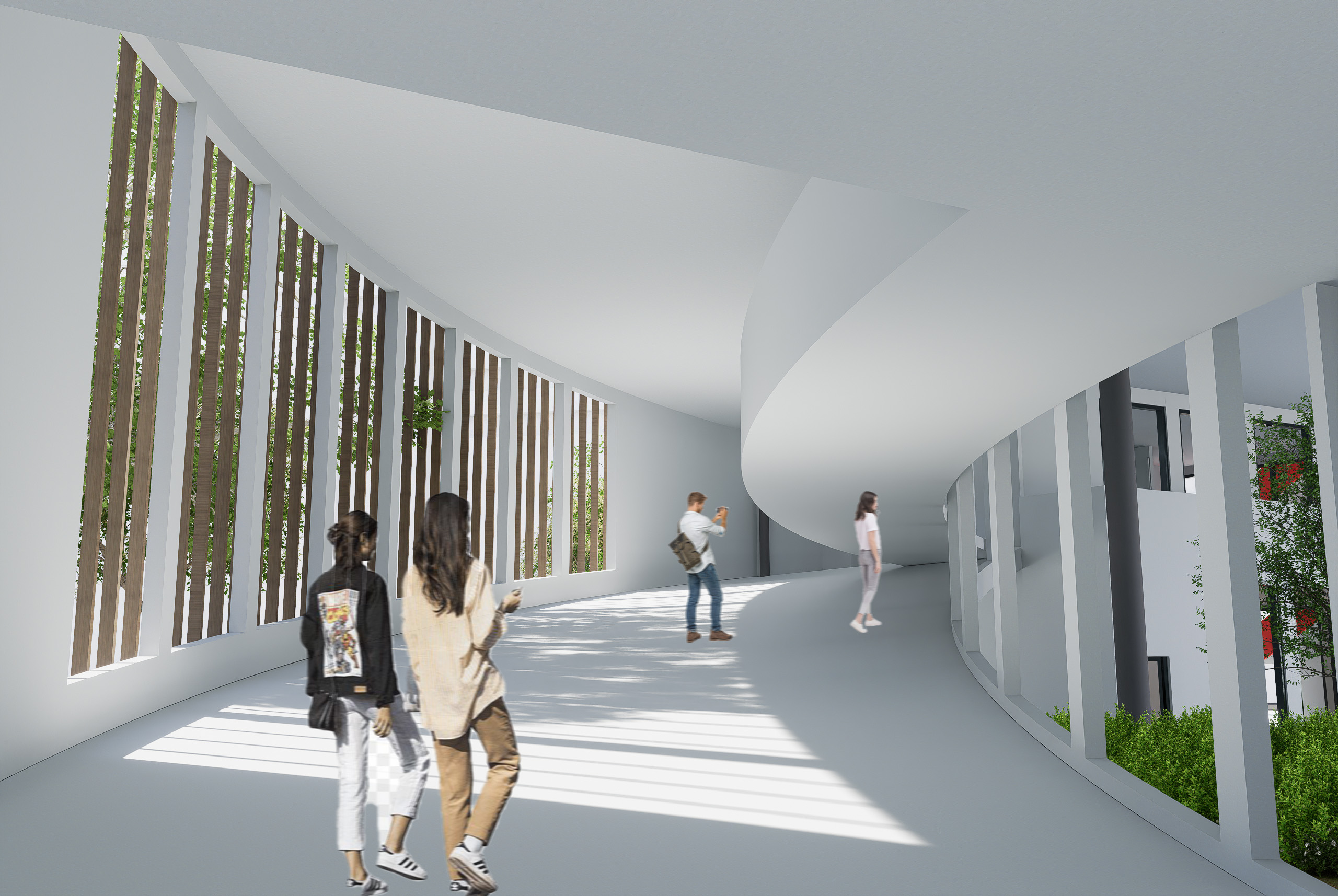 该设计理念旨在通过采用模块化集成建筑(MIC)系统来创建可持续建筑,该系统可以显着减少建筑垃圾、能源使用和整体环境影响。还注重通过中央庭院以及战略性布局的公共空间来加强社交互动和社区。此外,该设计还采用了多个位于不同方向的开口,以实现自然通风并最大限度地利用自然阳光,进一步促进建筑物的整体可持续性。