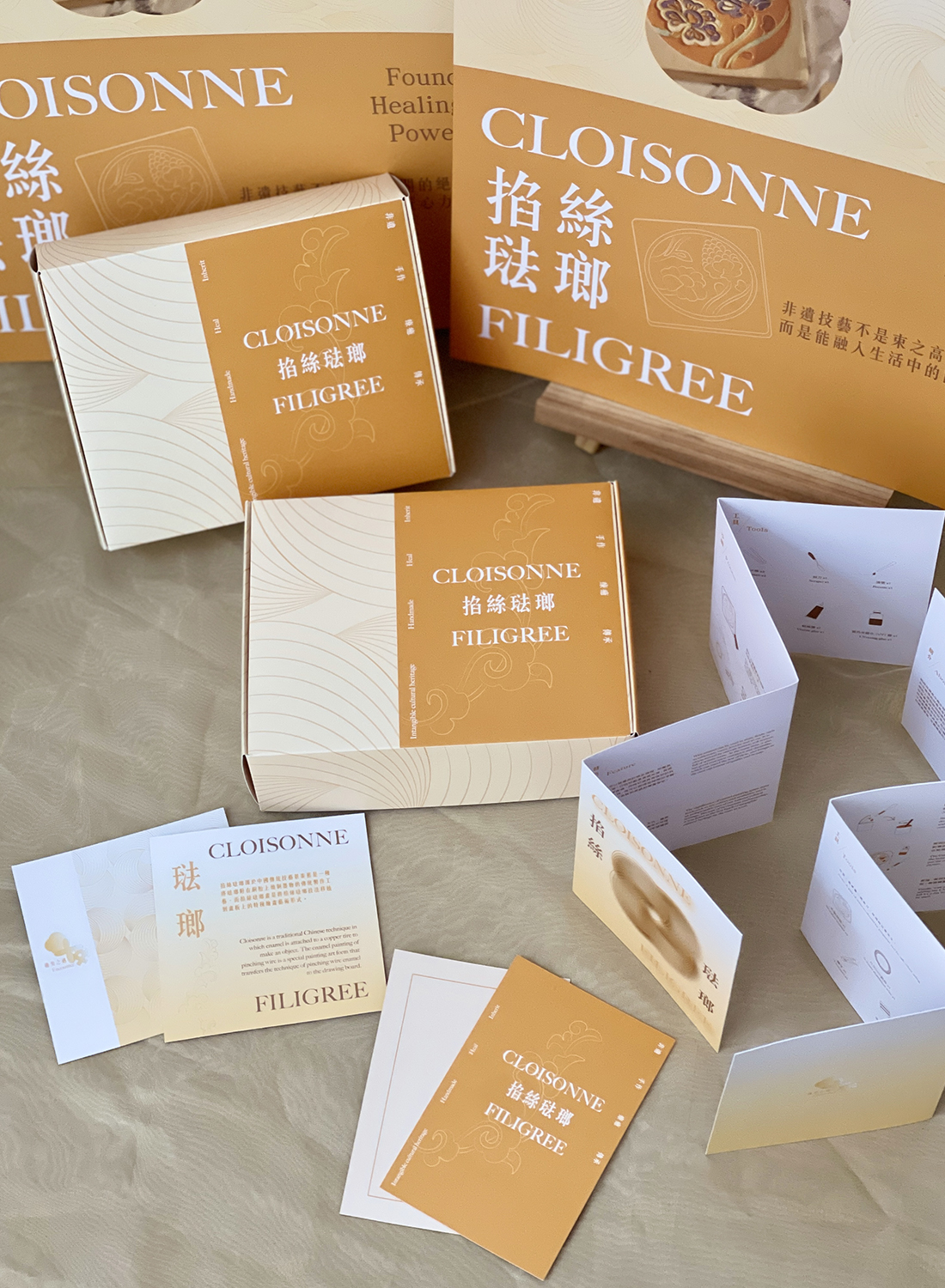 设计采用三种非物质文化遗产手法,提取标志性元素作为主要视觉元素,并在传统文化元素的基础上进行简化。例如,珐琅中的图案来源于敦煌绘画中的群图案,我将堆叠的图案简化为线条。创造符合现代社会的审美文化产品。