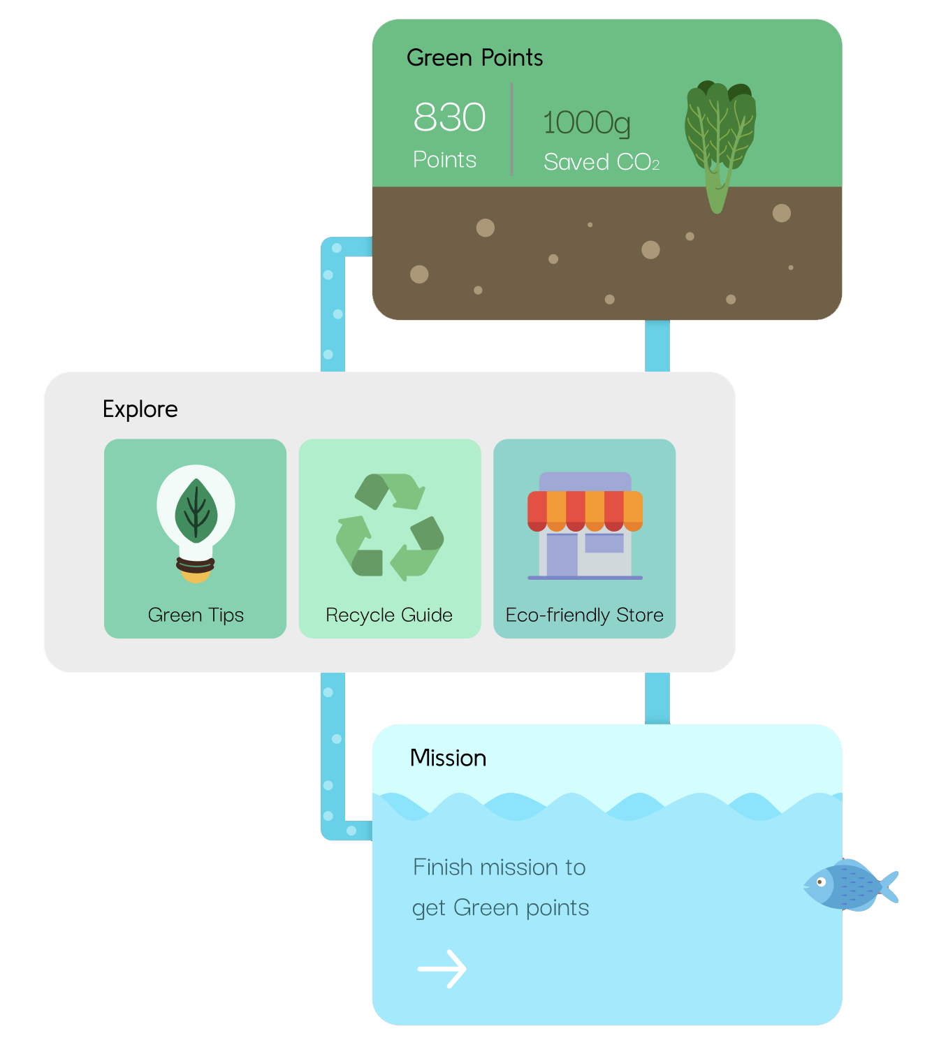 此应用程式以绿色农业概念鱼菜共生为主题,结合不同的功能和特性,为想要开展可持续生活但不知如何入手的用户,创造新的绿色生活体验。同时,积分和任务系统提供的奖励,也可为用户开展和坚持绿色生活方式带来动力。