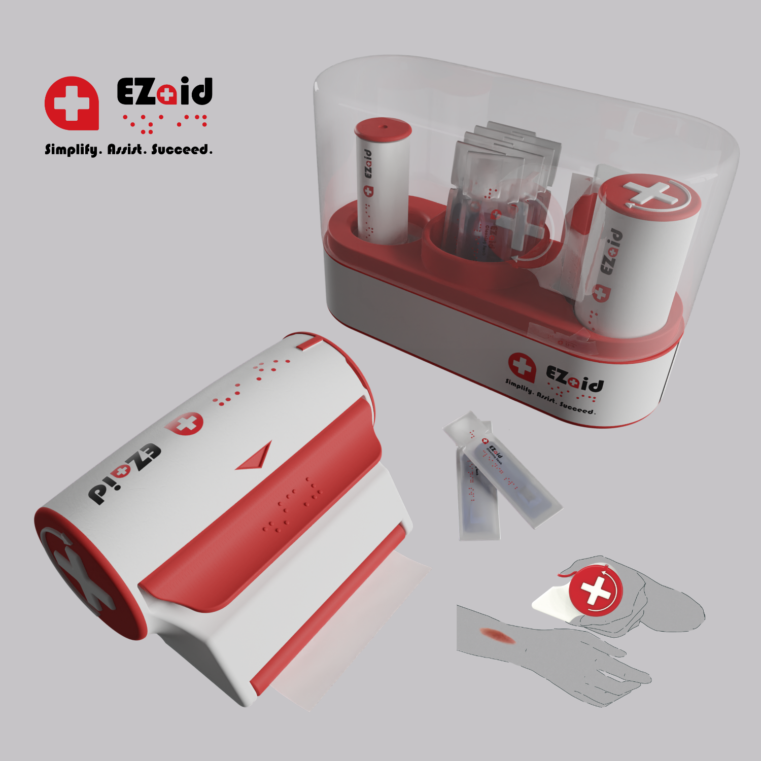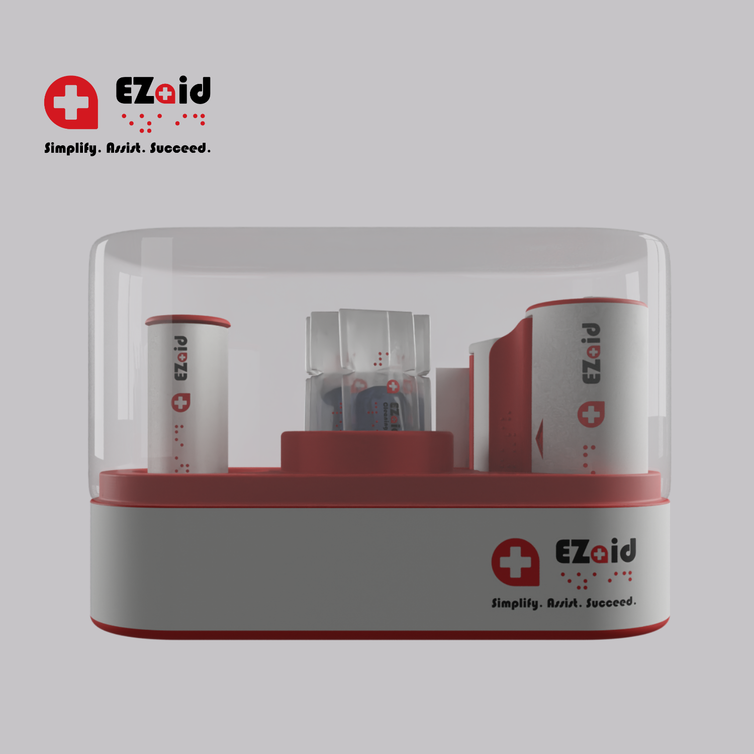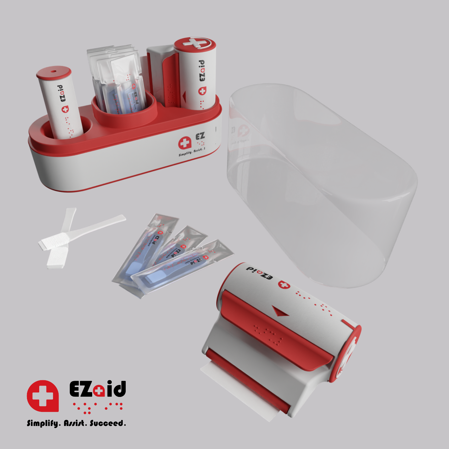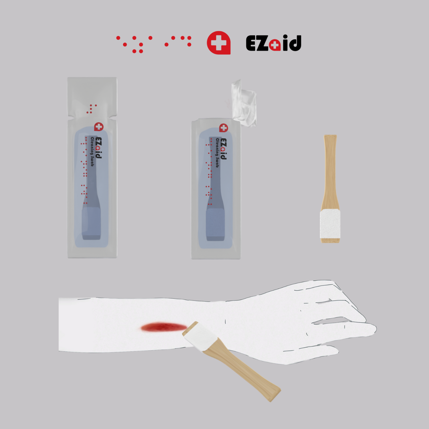 EZaid 旨在为视障人士提供创新的伤口管理解决方案。设计一款简单、使用者友善的伤口护理工具,帮助视障人士轻松使用和治疗伤口。是一种视力正常人和视障人士均可使用的医疗辅助产品。