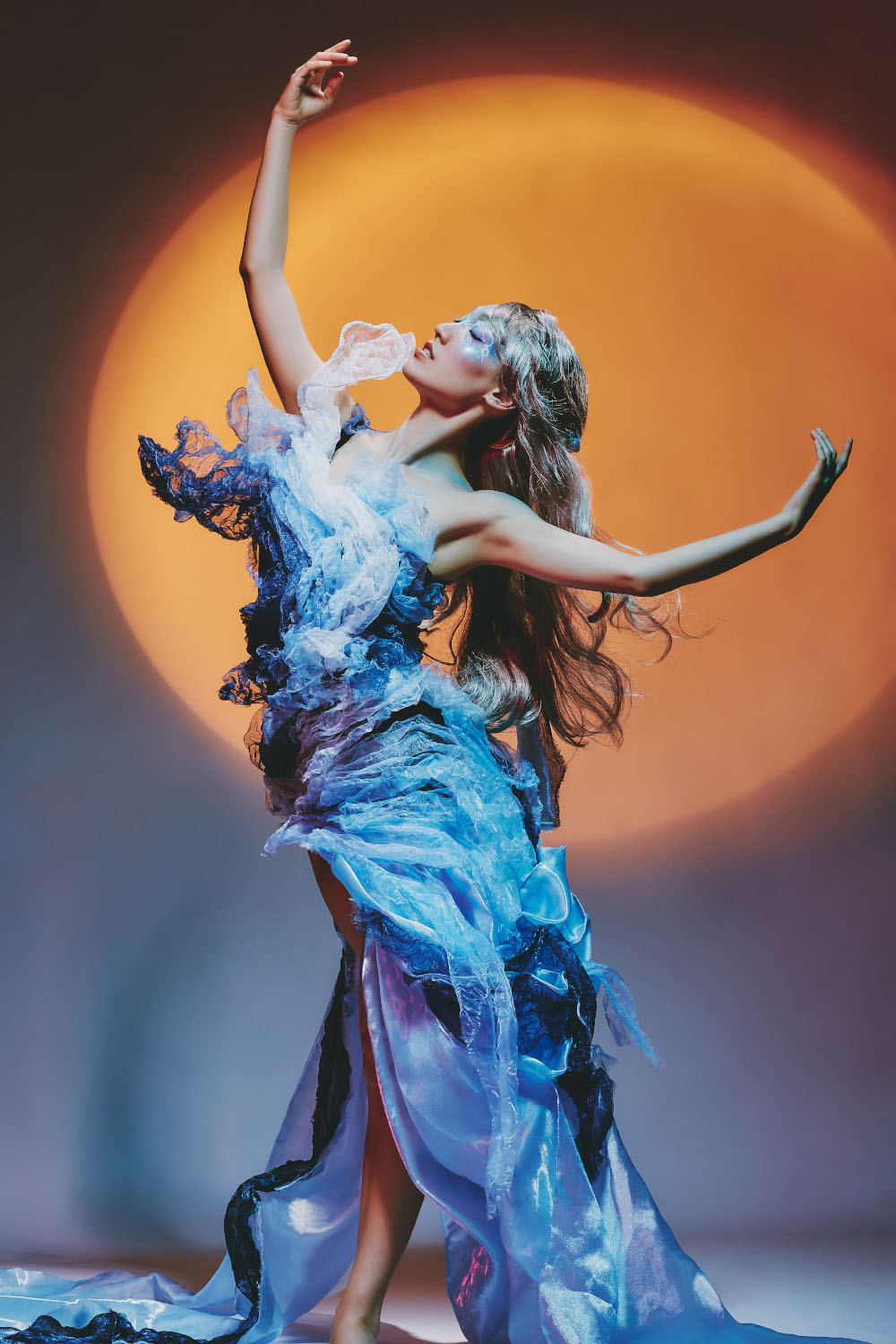Aegir’s的服装设计体现了海洋元素,以深蓝色为主色调并使用蓝色渐变的手法增加了层次感。这套服装主要受到海浪的启发。Aegir手持一支带有波浪图案的水母权杖,展现了海洋之神的活力和海洋线条。