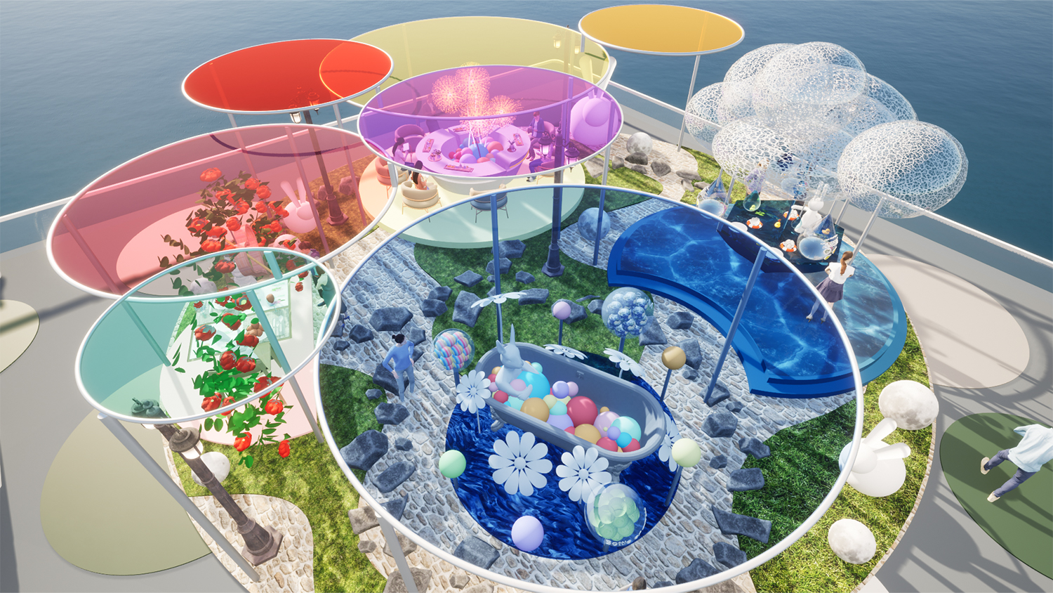 整个空间以月亮为设计中心,加入兔子、情感等设计元素。这些元素将使观众更容易感受到展览的氛围和理解展览的内容。展览也增加了各种互动体验,让展览变得更加有趣,给观众留下更深的体验和记忆。以黑色、白色、棕色作为底色,衬托出色彩缤纷的产品。展览将分为两个部分:一是了解品牌背后的故事和理念;二是了解品牌背后的故事和理念。第二,了解产品。希望观众在体验展览后,能找到适合自己的产品,学会如何放松、享受生活。