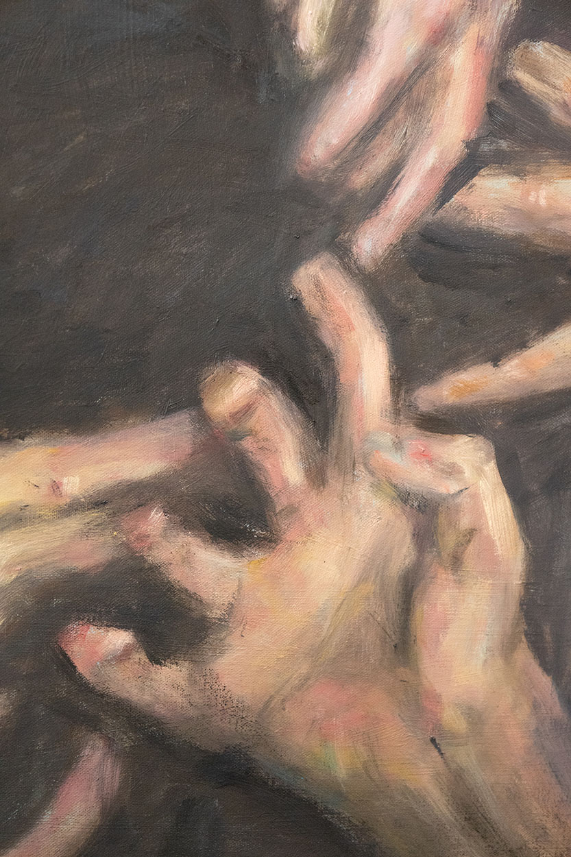 人的很多痛苦都是来自于与执著,因此。我想希望透过这个份作品,凸显出执著的无意义性