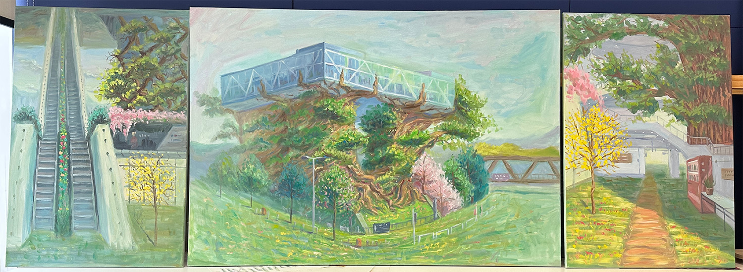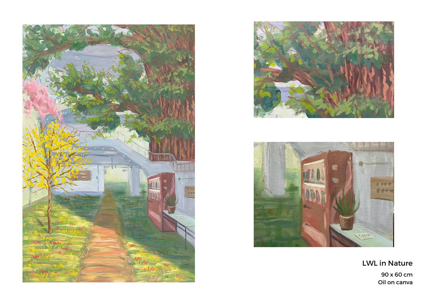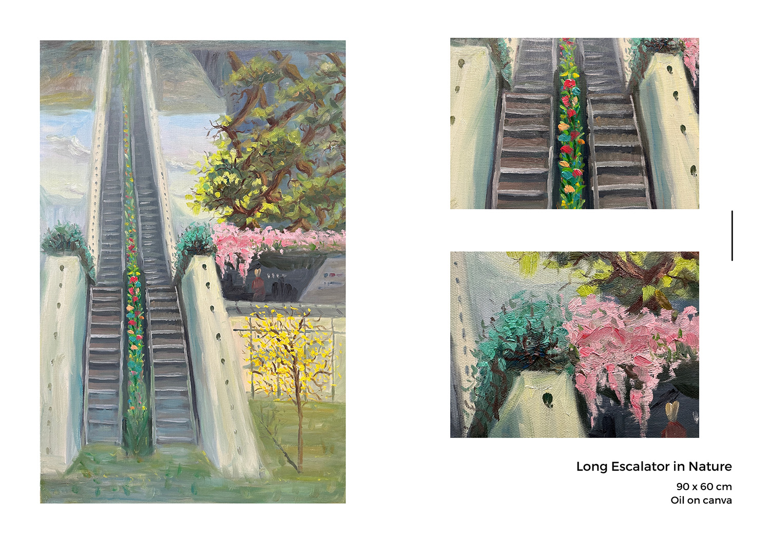 现代人的生活脱离了大自然,所以人们并不关注大不重视自然。 香港的城市绿化覆盖率只有20%,。 这并不是一个健康的环境。 所以我想透过我的作品让观者观众可以看到人与大自然共存的美好,让人们重新关注大自然。