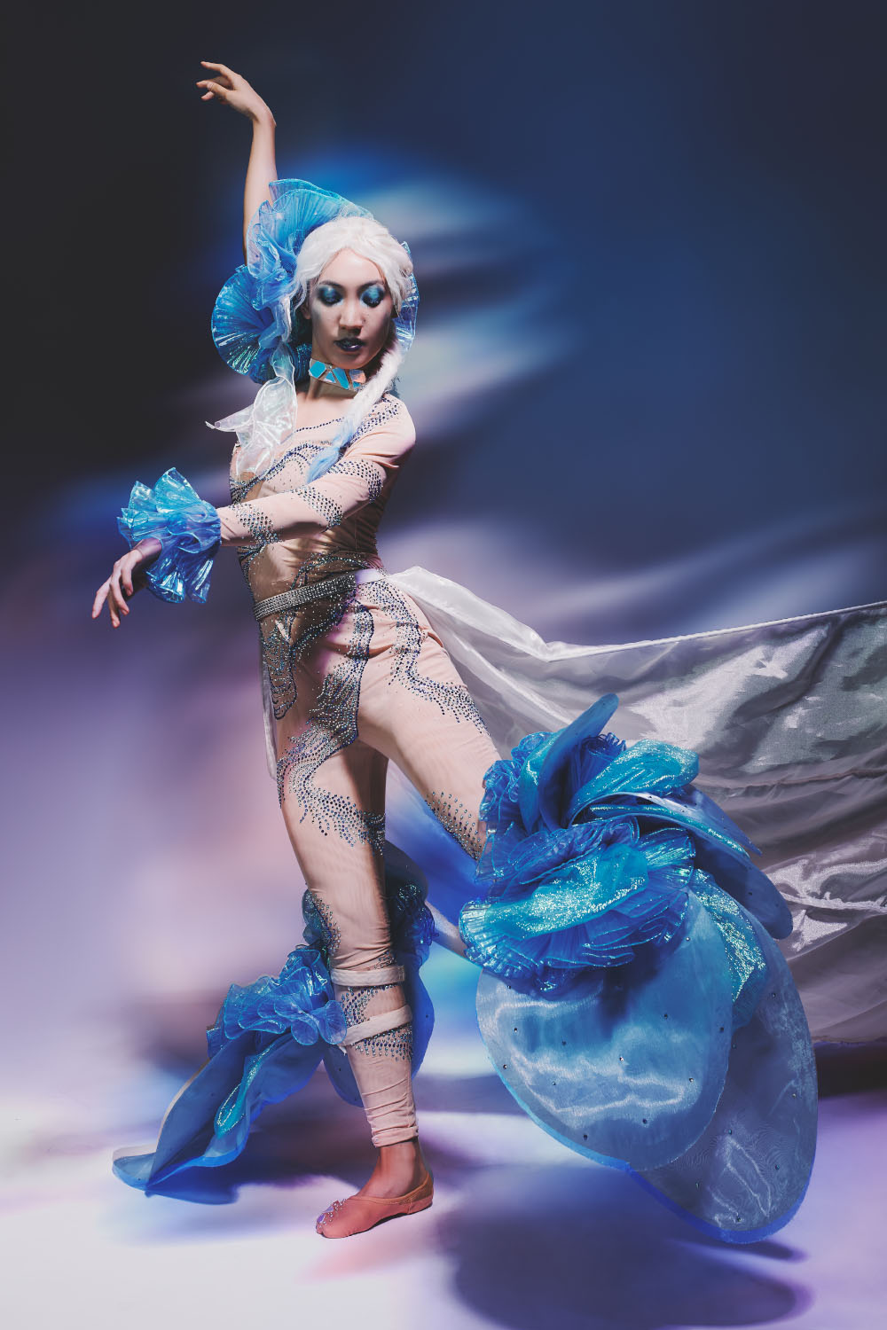 我的设计理念源于美人鱼和海妖。传说中,她十分美丽,身上的鳞片在深海中发出光芒,如同星空中的星星一样闪闪发光,熠熠生辉。