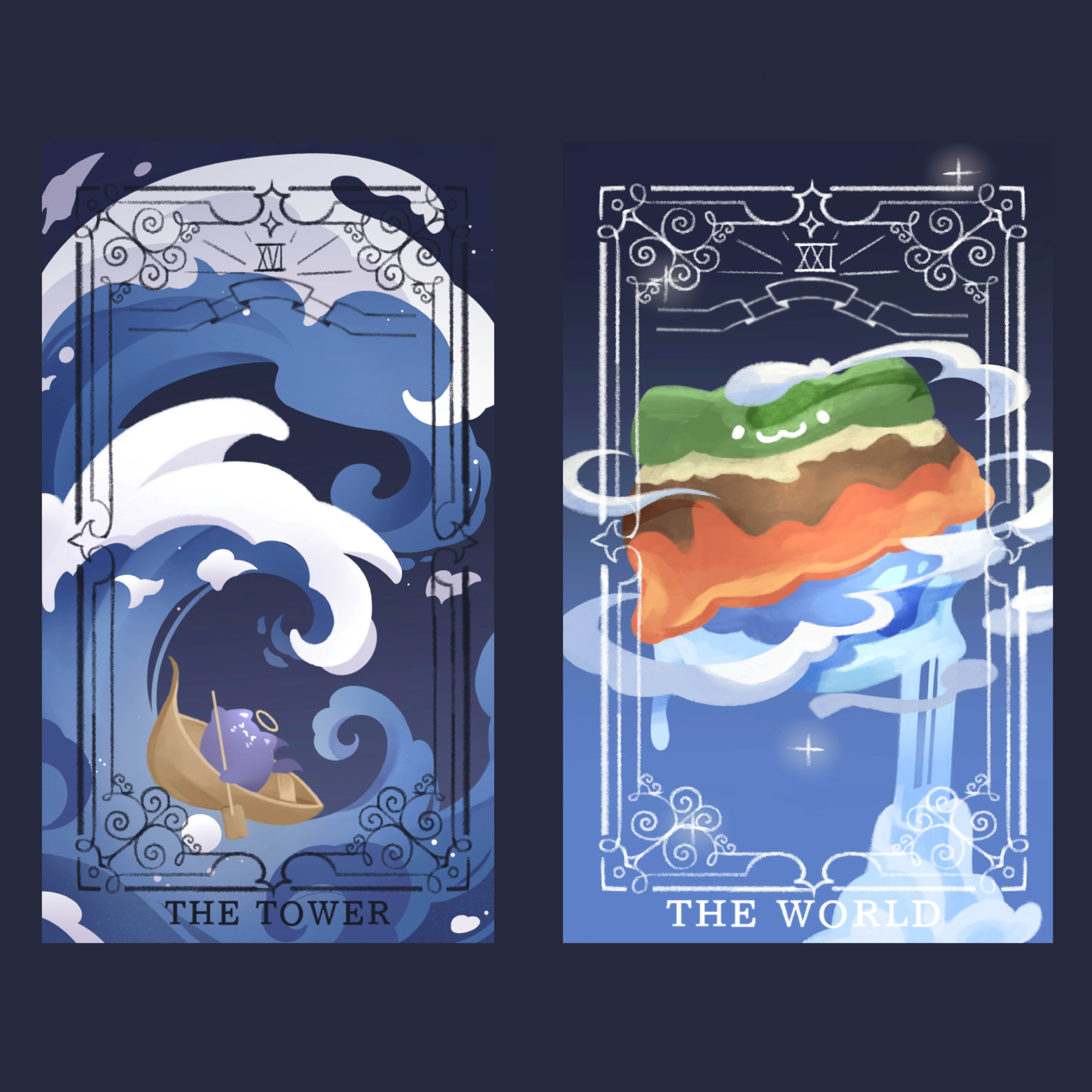 这套塔罗牌的设计灵感来源是我的原创猫品牌,我做了大约21张塔罗牌,上面有很多视觉意义和简单的图形,让大家可以轻松了解卡片的含义。
