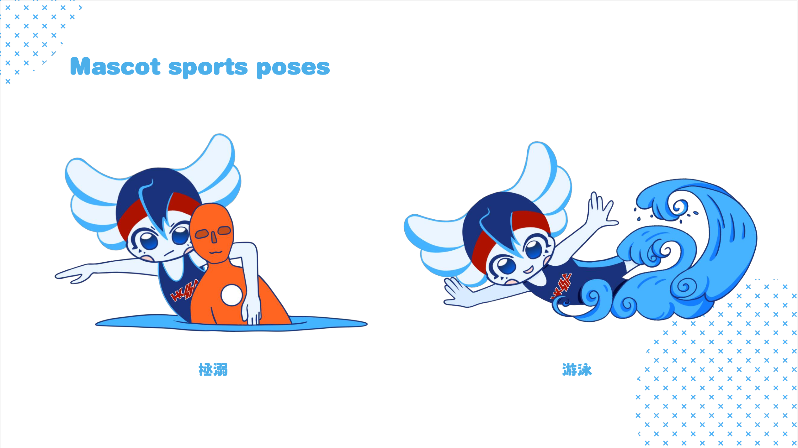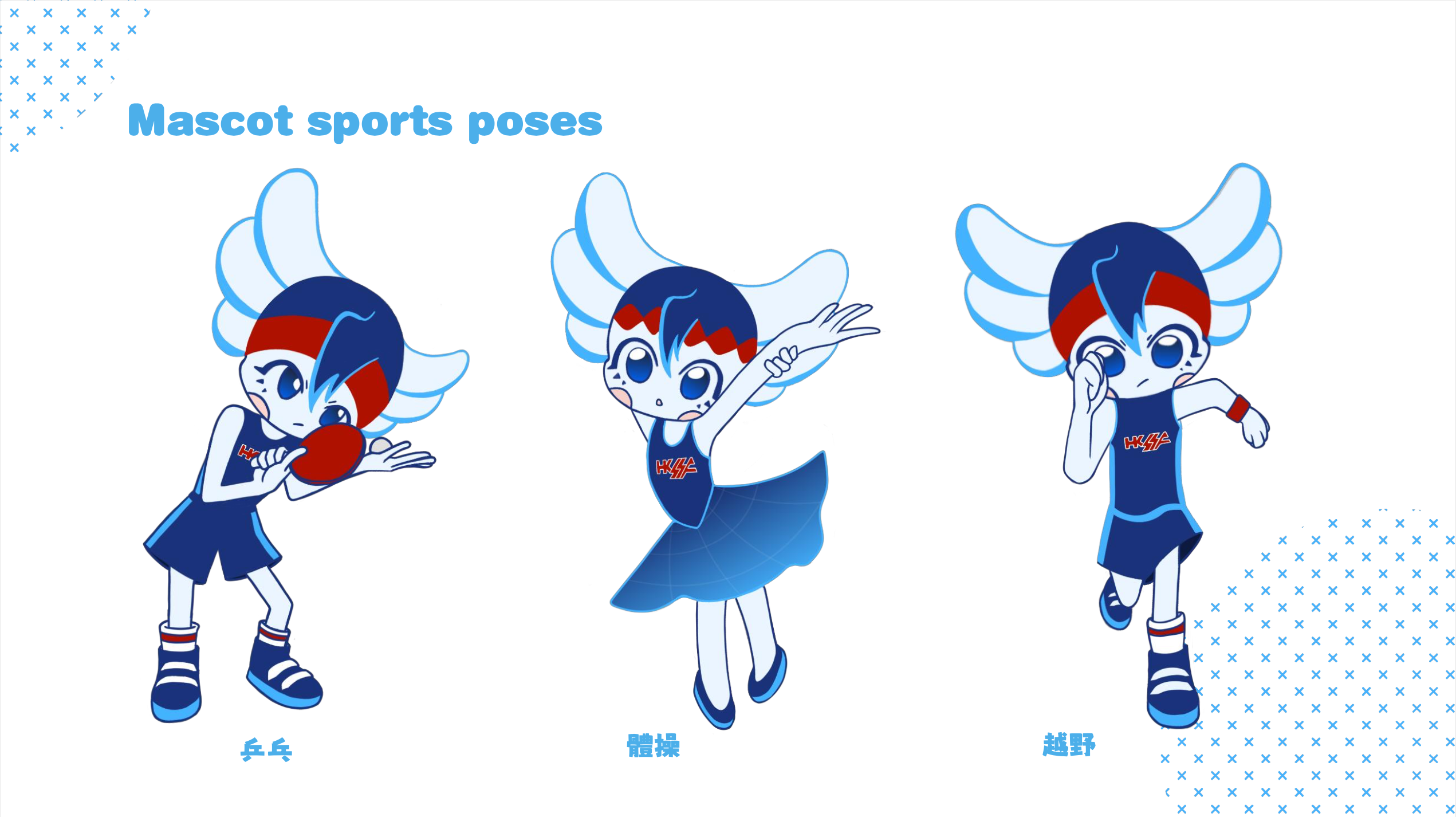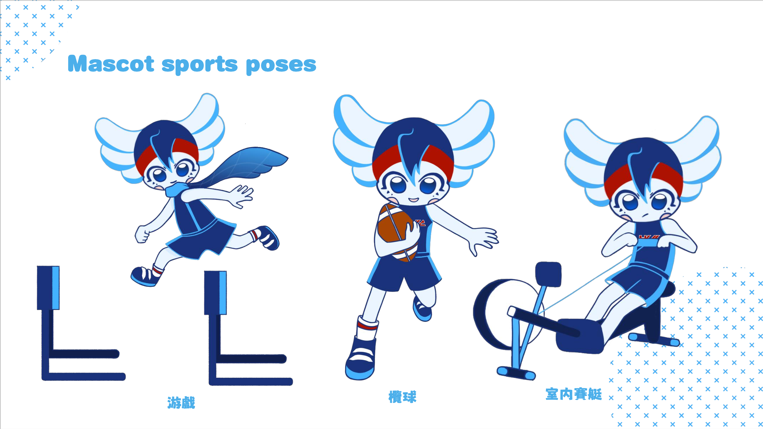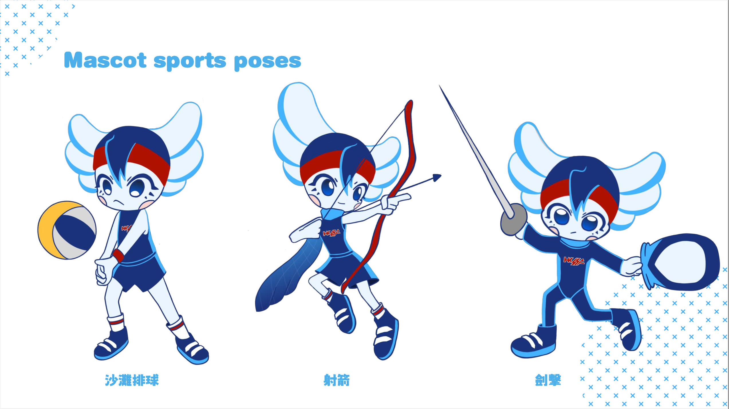 重新设计的吉祥物保留了原来的红色头巾、翅膀和蓝色色调。这款吉祥物以精灵和游侠为主题,翅膀改为耳朵,肤色为浅蓝色,看起来更像精灵。头部图案换成了围巾,不妨碍动作且保持灵活性,更贴近游侠形象。面部特征被修改得更可爱,身体比例也做了调整,运动起来更灵活方便。