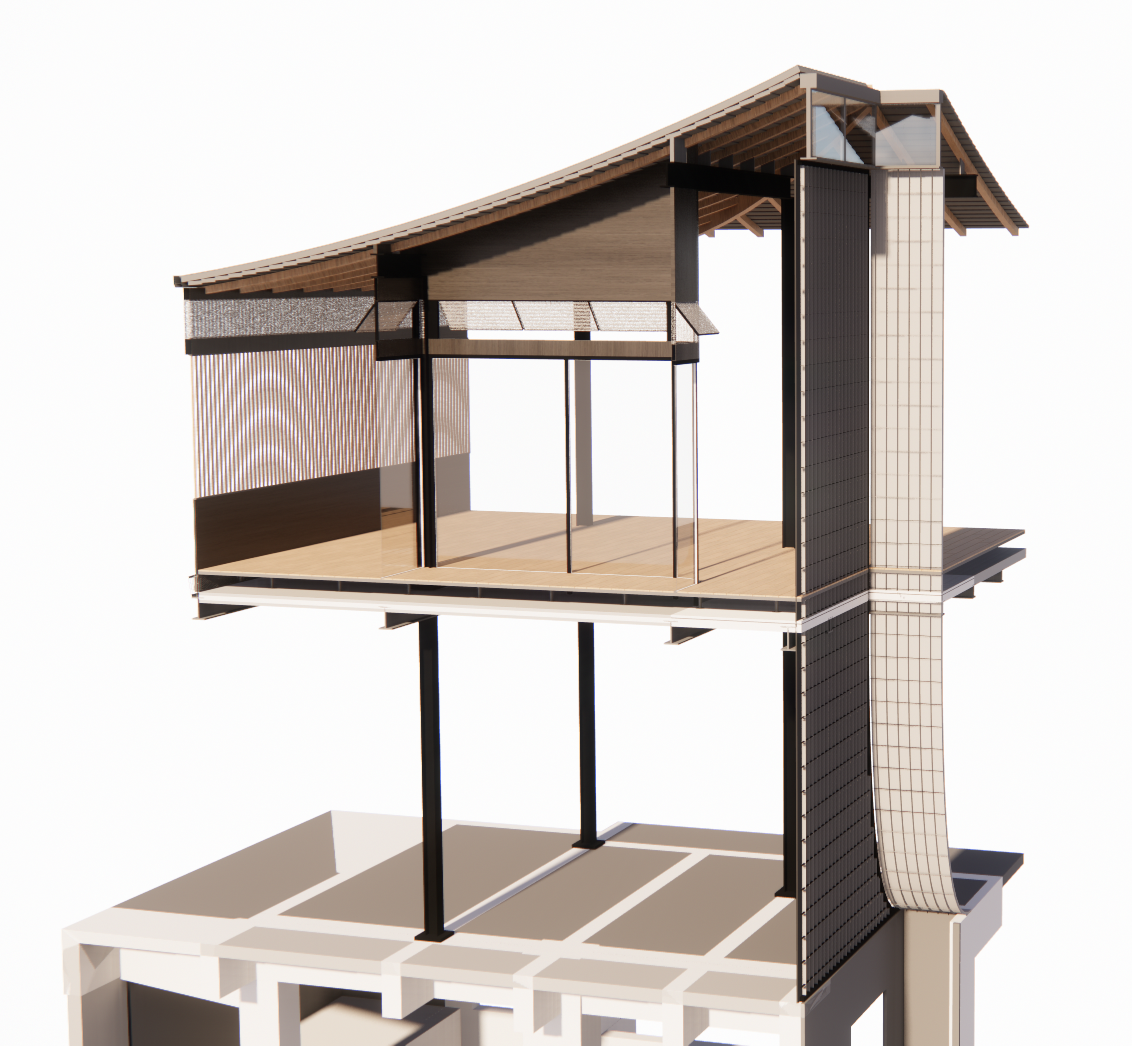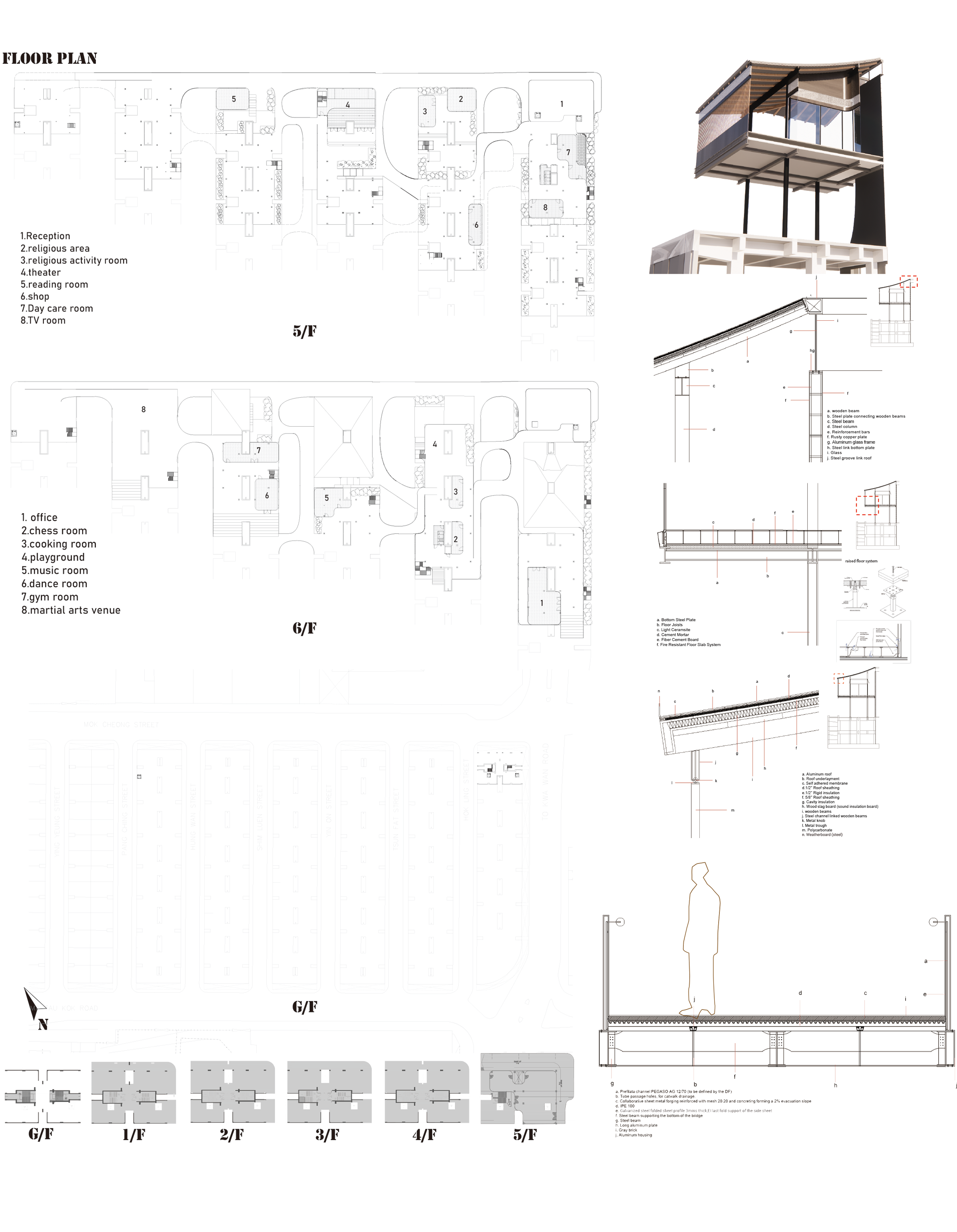 新的建筑加建在旧建筑上,利用天台的空间提供舒适的活动区域给老人家,并增加与周围住户的社交关系,提升社区参与度以及促进文化交流。