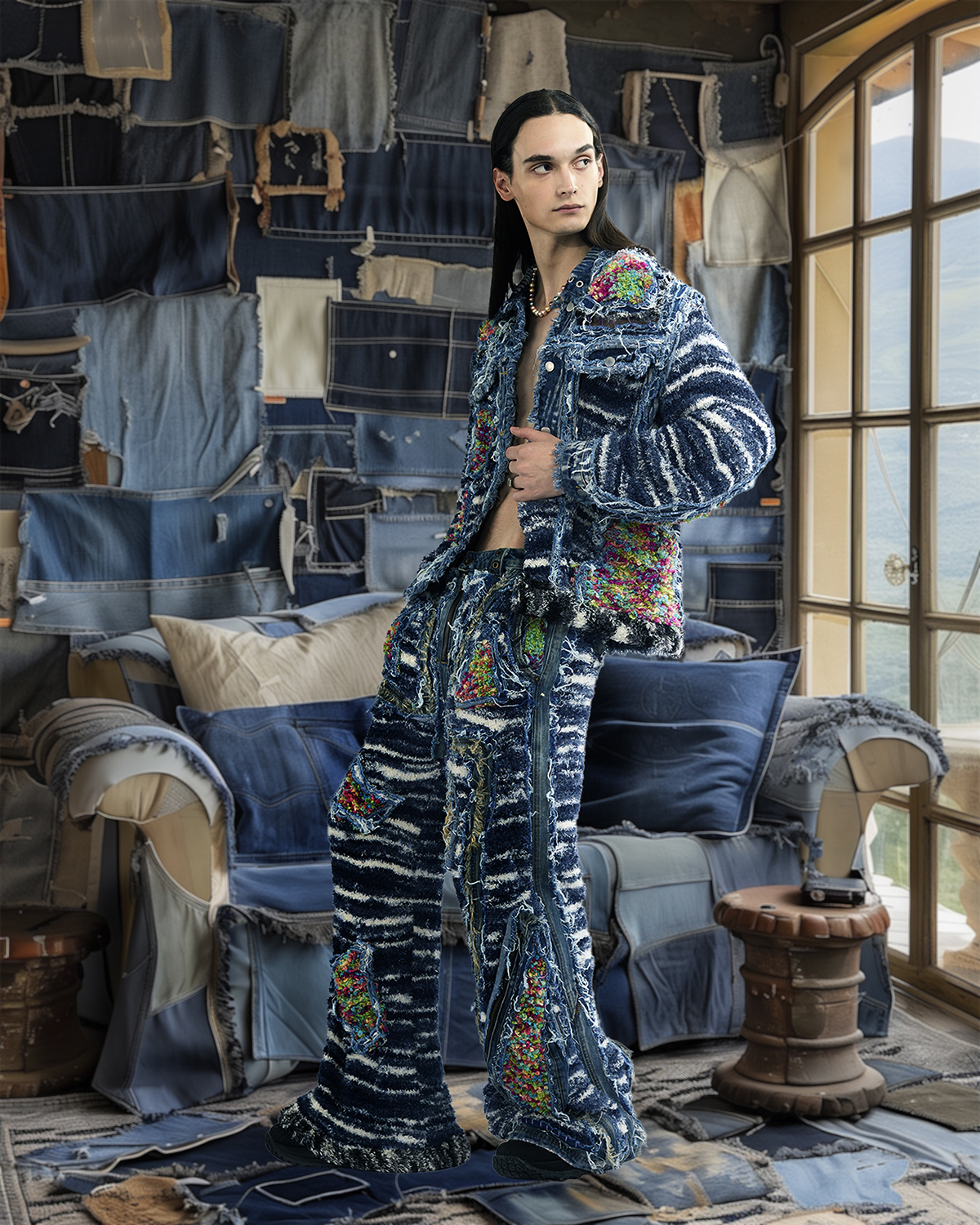 针织服与牛仔布的融合展现了独特的时尚美学,同时通过升级再用和再造,减少了布料浪费。