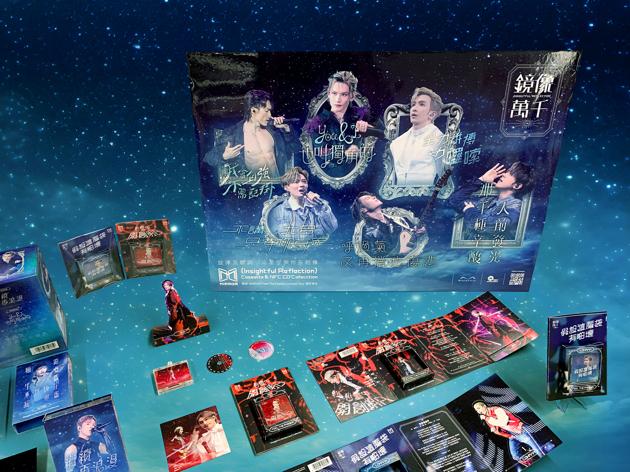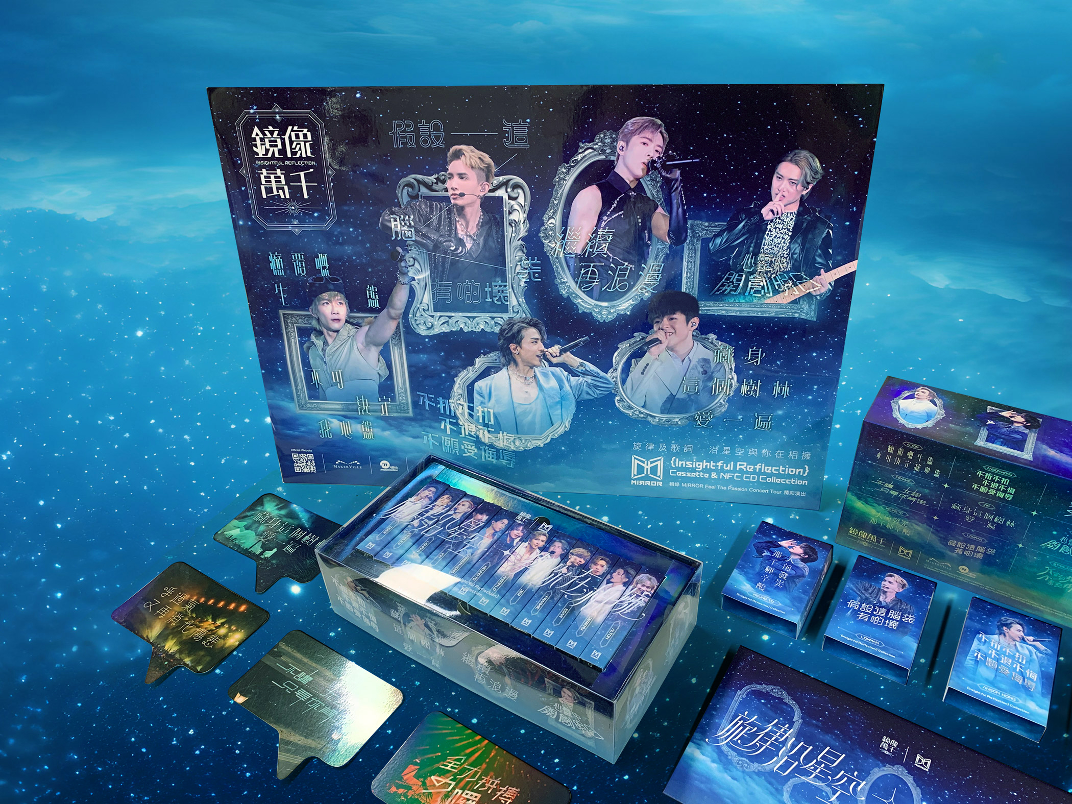 透过「镜像万千」计划,我们用精美的字型设计来吸引更多人关注MIRROR的歌曲。这些字型源自MIRROR的团体及个人歌曲,并结合了歌曲名称、歌词含义、歌曲风格和舞蹈动作等创作元素。我们希望透过一系列具有创意的音乐产品,如卡式录音带、NFC 唱片造型钥匙扣等,为乐迷带来独特的视听体验。