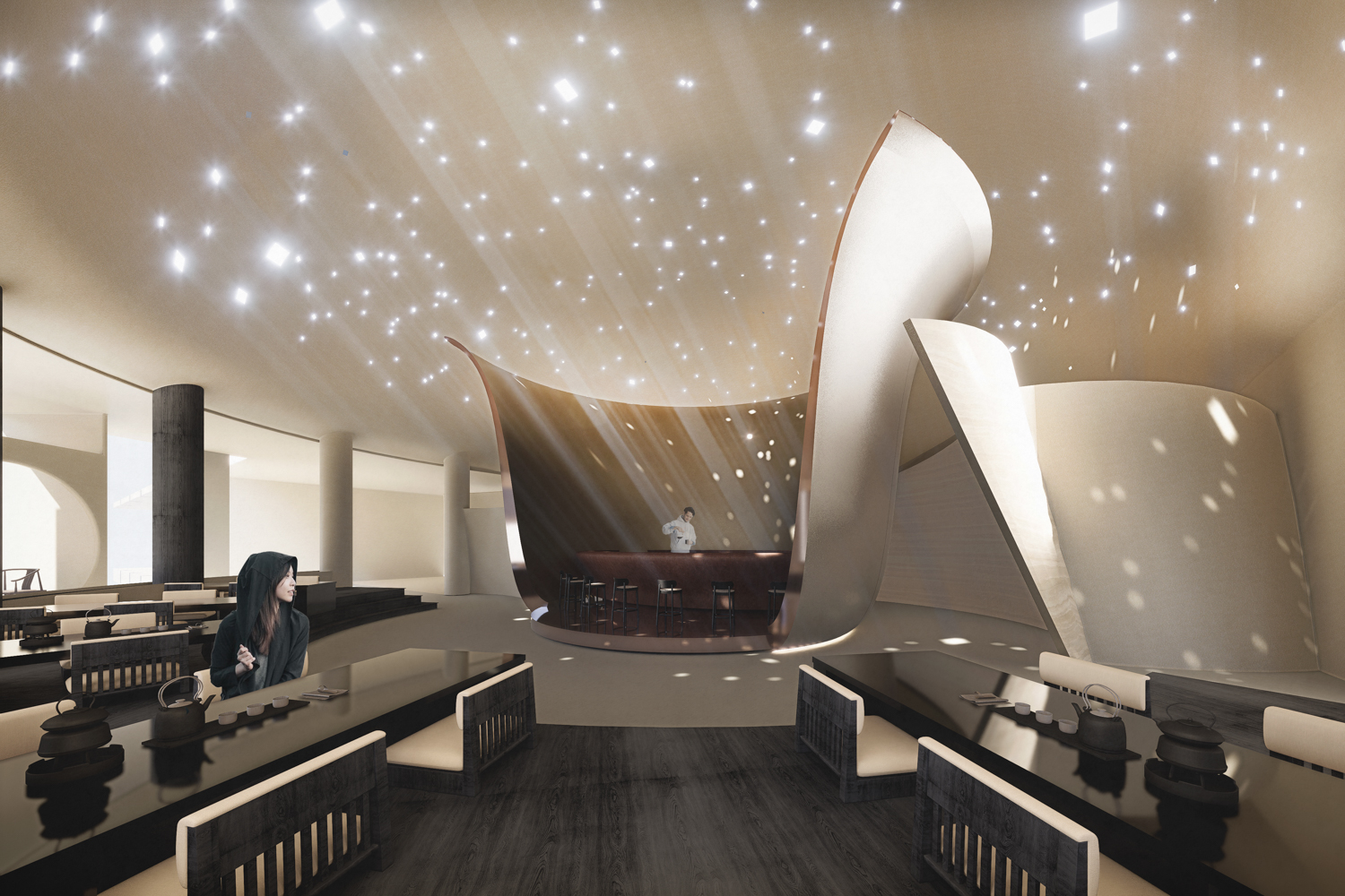 一个以宋代清闲文化为主题的茶艺空间,引导访客与山水结缘,感受天人合一之境。