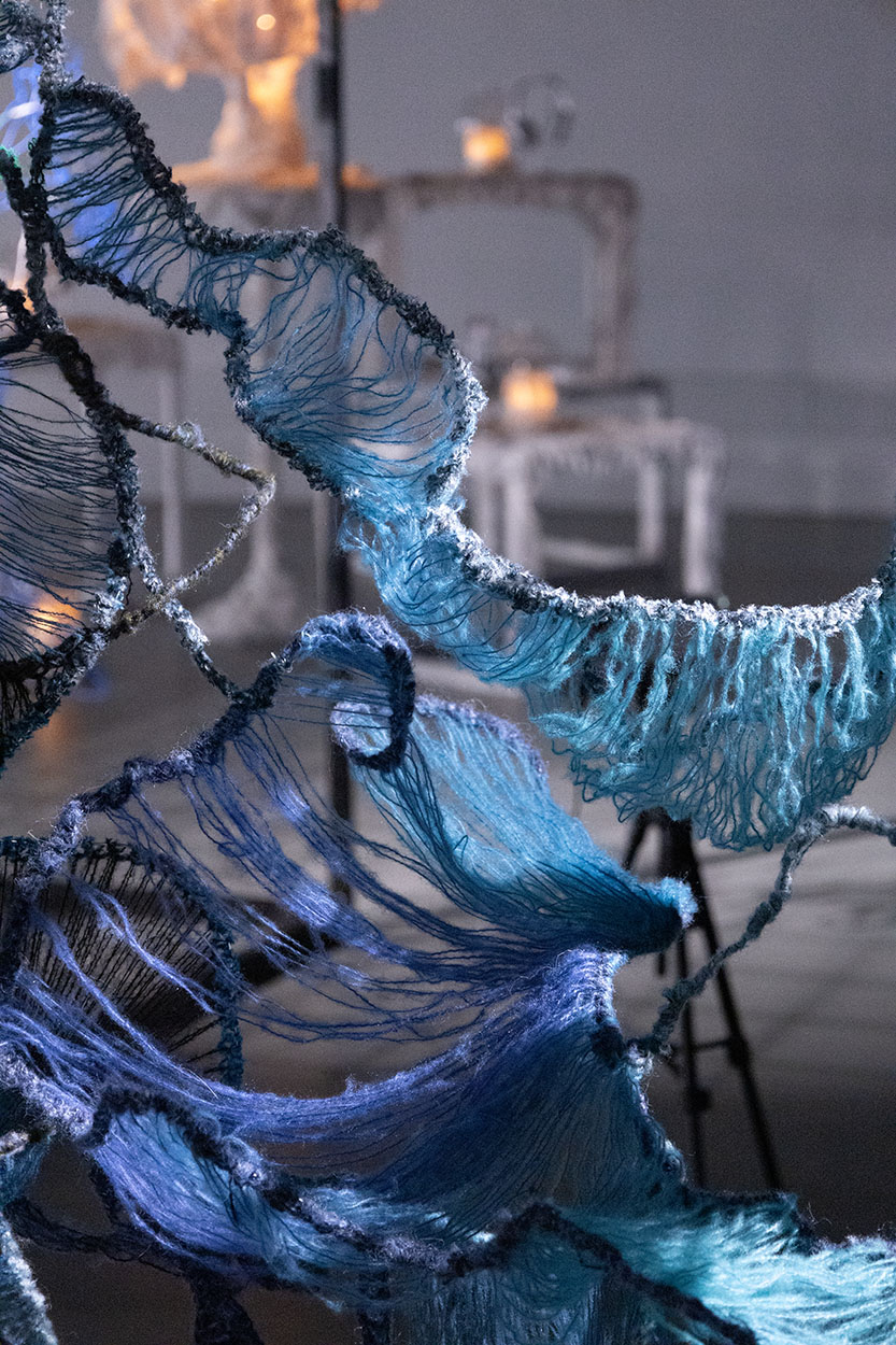 这里的每一针都细腻地描绘了我忧郁的思绪。我希望作品能让所有观众深切地感受到一个被悲伤吞没之人的内心世界。
