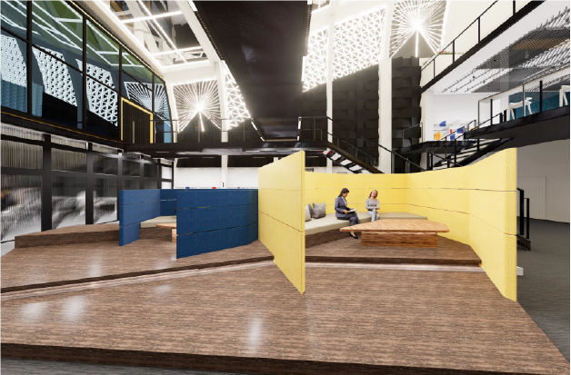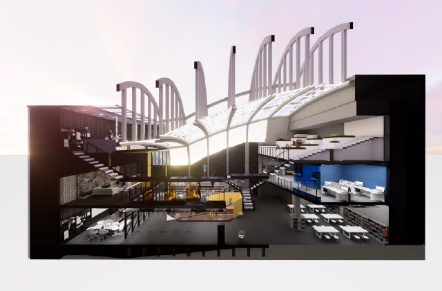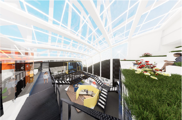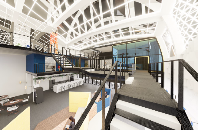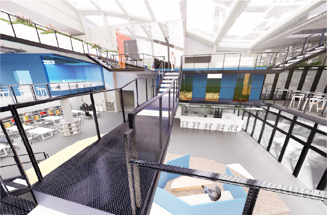 这是一个面向公众的共享工作空间。 主要客户群为设计师和年轻企业家。 通过空间内不同的高度变化和起伏形态,为设计师们带来全新的体验,同时从不同角度呈现的景观也有助于他们获得新的灵感。