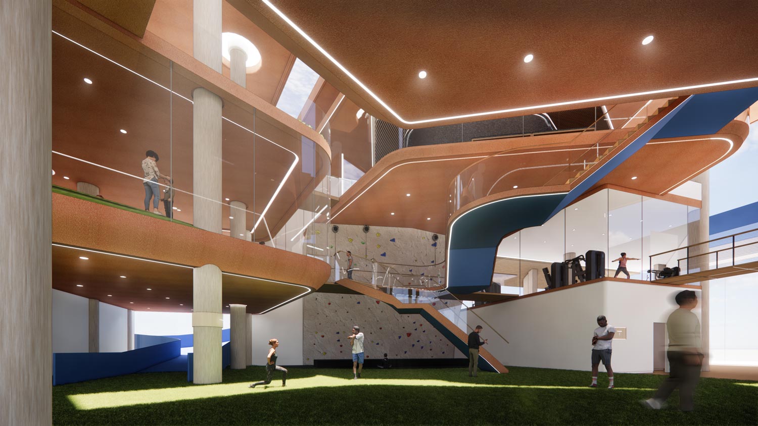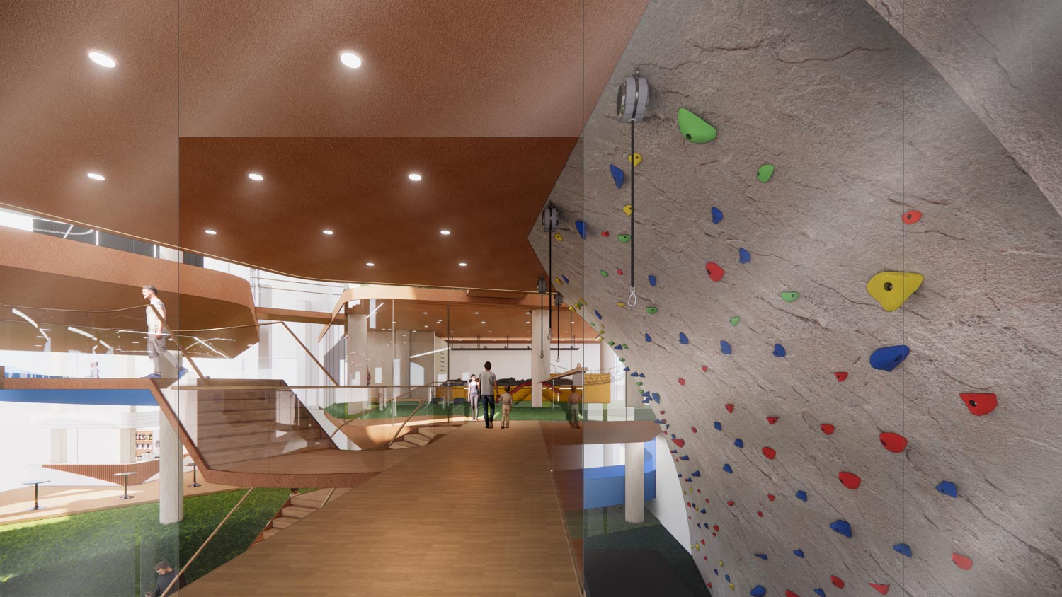 The Root是一个半开放式的公共运动中心,旨在为这个繁华城市的人们提供一个放松、减压和维持健康的空间。它希望帮助个人在这个空间里重新连接自己的根源, 就像他们小时候在宽敞的户外空间探索和认识不同的人一样, 让自己的身心真正放松下来。