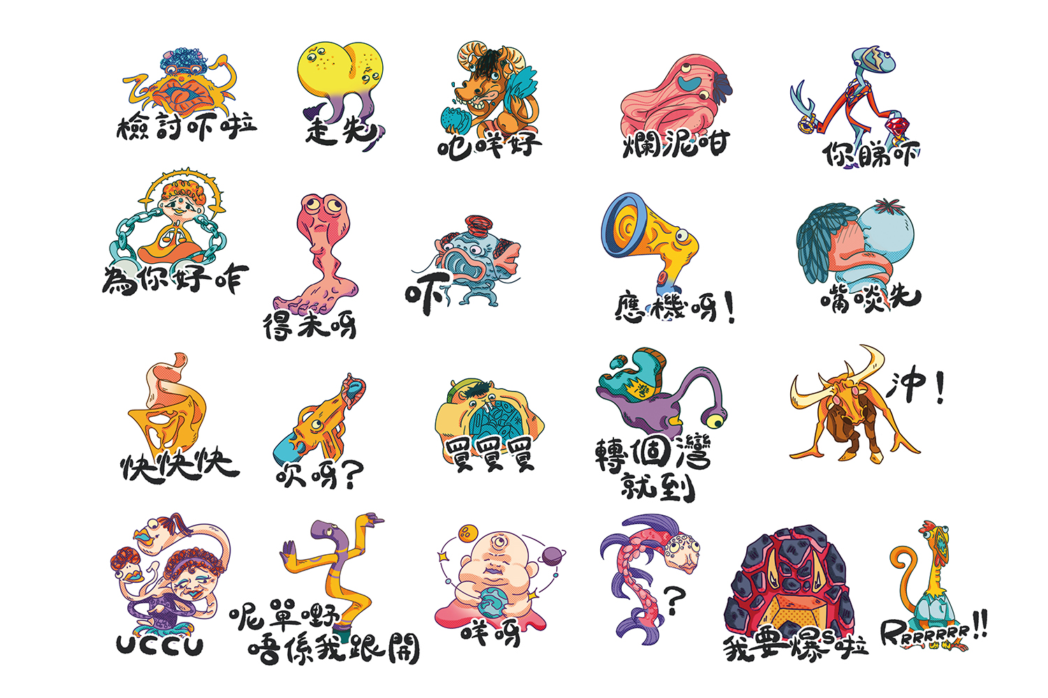 怪异特调旨在唤起香港人对陋习的认识和反思。 以一系列陋习角色化,以插图展示陋习对社交关系和整体社会氛围的负面影响,使用鲜明大胆的视觉元素,融入讽刺和幽默,以引起观众的关注并激发思考。