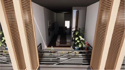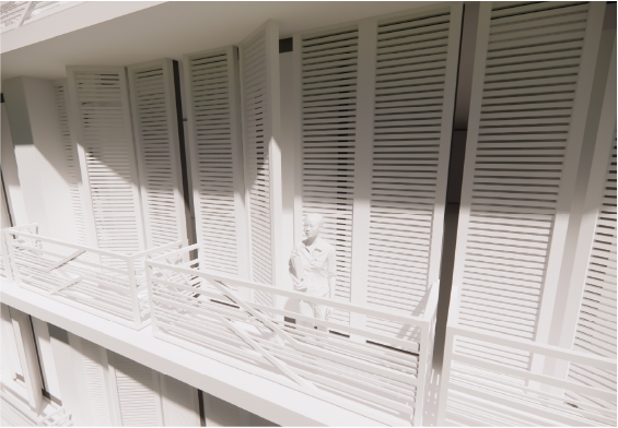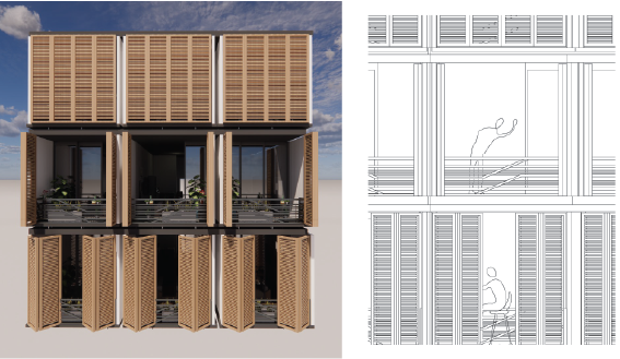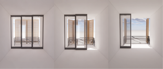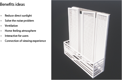 这设计重点在怎样迎合于每人生活,当中重点在于日光部份。 考虑以上几点,我们想加入活动式百叶帘设计,能用于阻隔部分阳光的热力及保持灵活性和私稳度。 我们认为这是合适的设计。